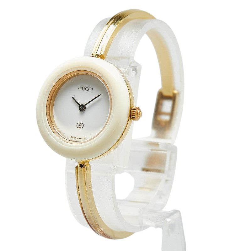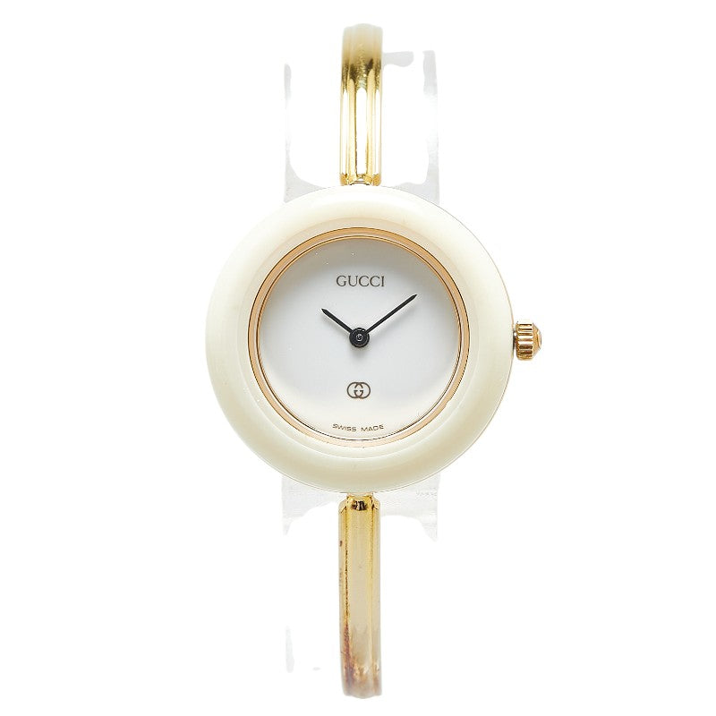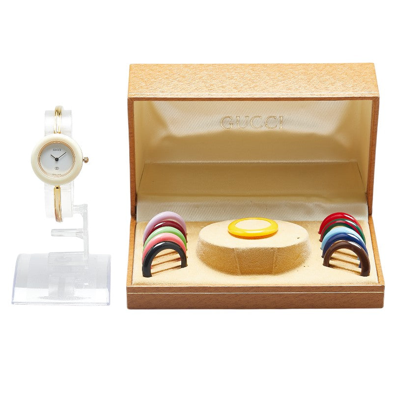 グッチ チェンジベゼル 腕時計 1100-L クオーツ ホワイト文字盤 メッキ レディース GUCCI 【中古】