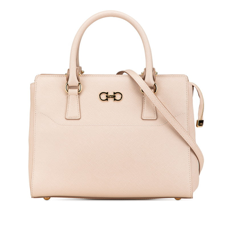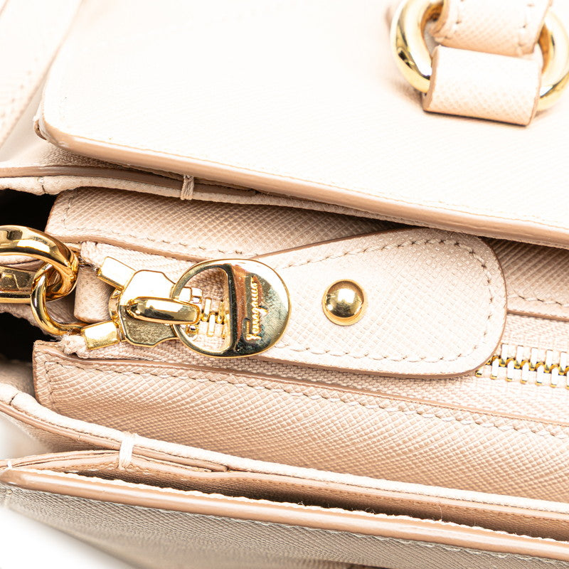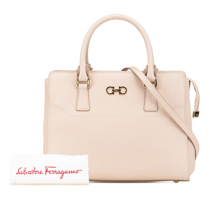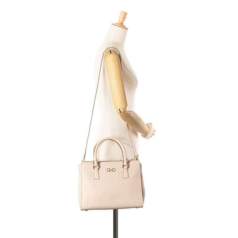 サルヴァトーレフェラガモ ガンチーニ ハンドバッグ ショルダーバッグ 2WAY GG-21F317 ベージュ ピンク レザー レディース Salvatore Ferragamo 【中古】