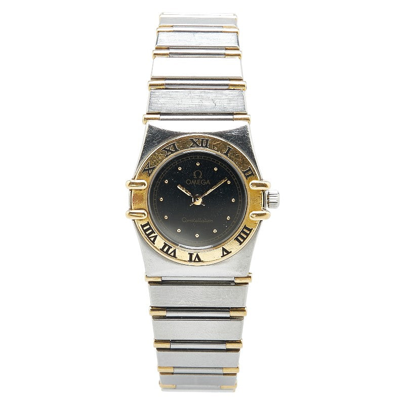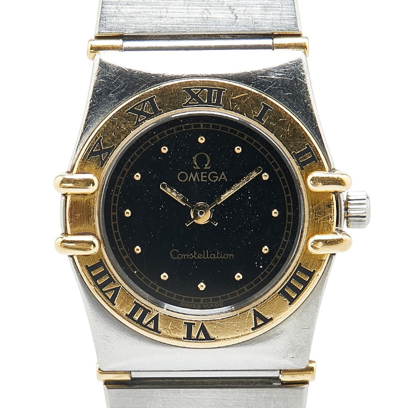 オメガ コンステレーション 腕時計 6104/465 クオーツ ブラック文字盤 ステンレススチール K18YG イエローゴールド レディース OMEGA 【中古】