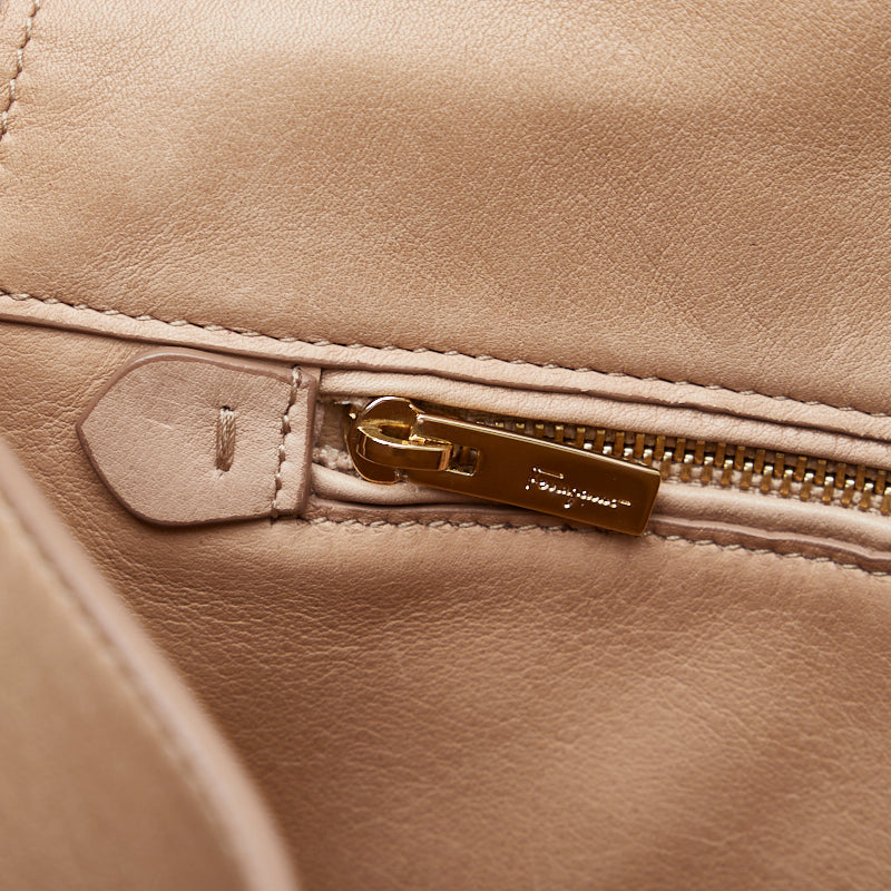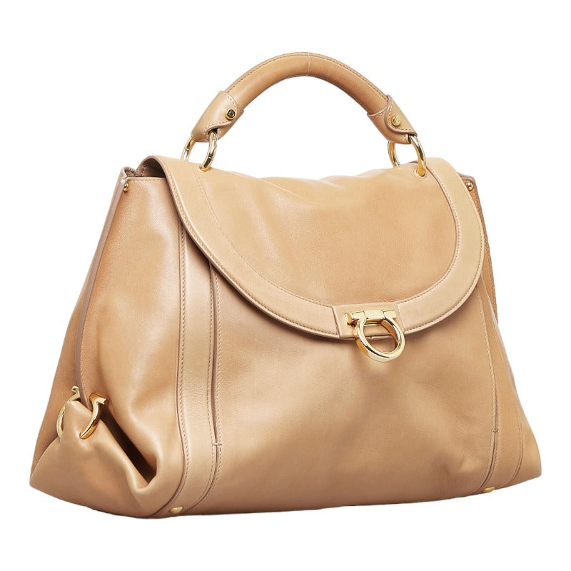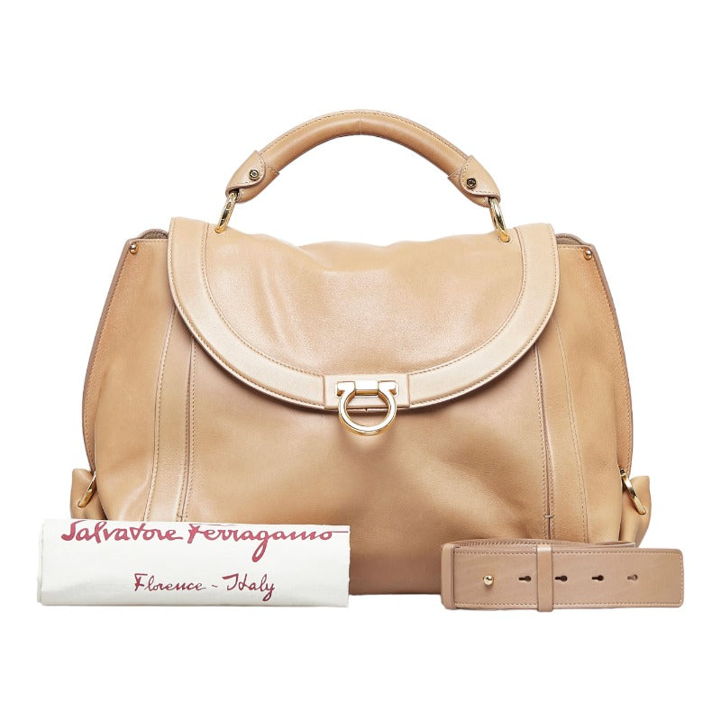 サルヴァトーレフェラガモ ガンチーニ ソフィア ハンドバッグ ショルダーバッグ 2WAY RG-21 ブラウン ゴールド レザー レディース Salvatore Ferragamo 【中古】