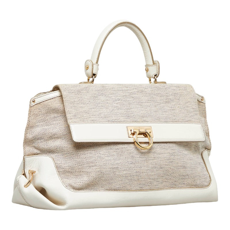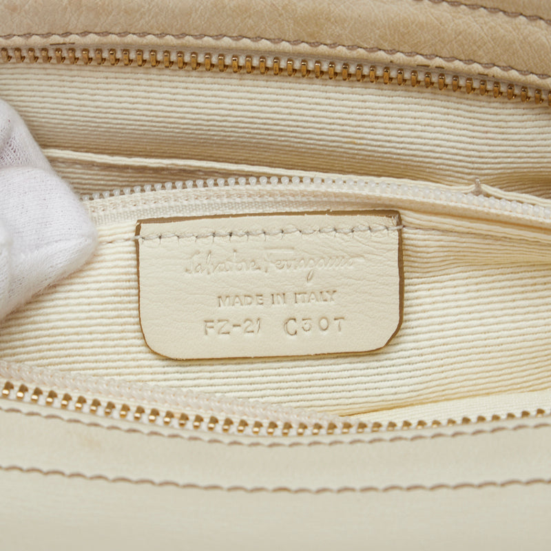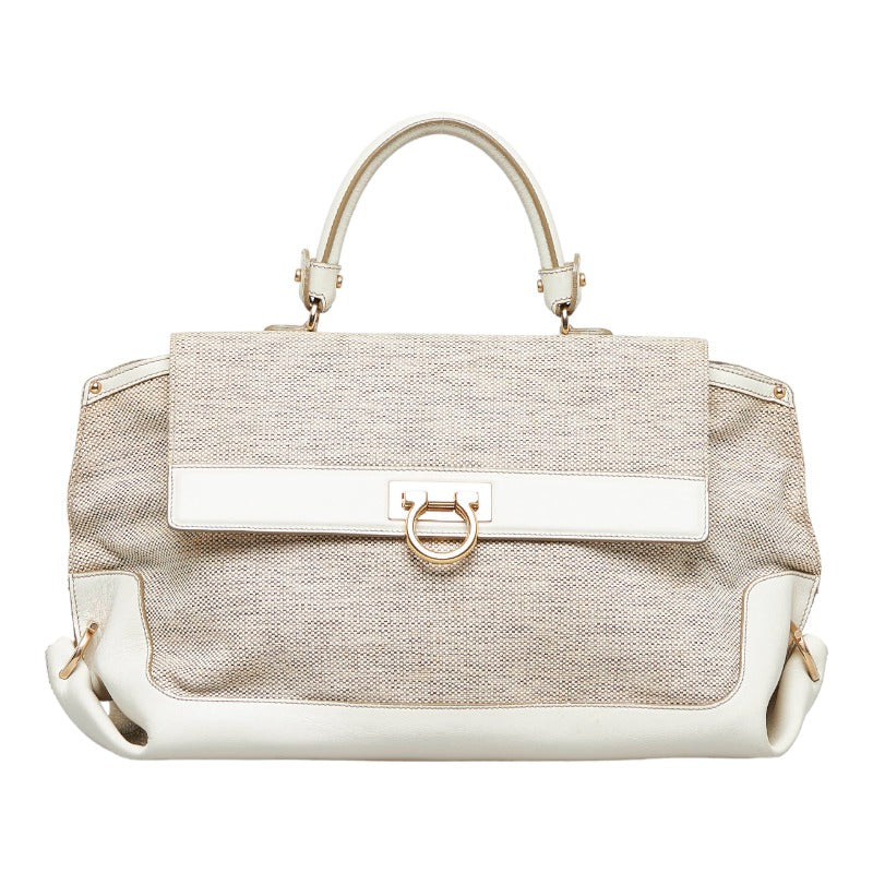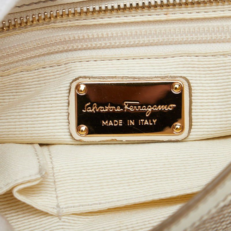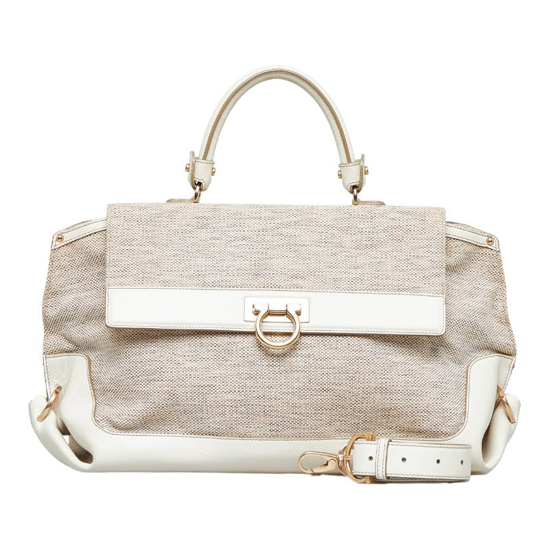 サルヴァトーレフェラガモ ガンチーニ ソフィア ハンドバッグ ショルダーバッグ 2WAY FZ-21 ベージュ ホワイト キャンバス レザー レディース Salvatore Ferragamo 【中古】