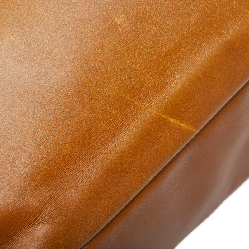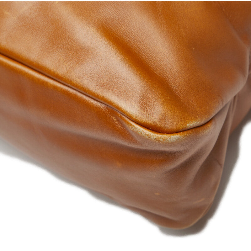 外側⇒型崩れ・目立つ線キズ・スレ・薄汚れ・所々に点状の汚れ・ヤケ サイド⇒型崩れ・線キズ・スレ・点状の汚れ・ヤケ 底面⇒型崩れ・線キズ・スレ・薄汚れ・目立つ角スレ ハンドル⇒ヨレ・スレ・コバスレ・コバひび割れ 金具⇒小キズ・クスミ・僅かなメッキはがれ 開閉口⇒型崩れ・線キズ・スレ・ヤケ、ファスナー持ち手レザーに全体的にスレ 内側⇒メインと開閉口付近にスレ・毛羽立ち、ファスナーポケット内側に薄汚れ・シミ・開閉口付近に目立つシミ |