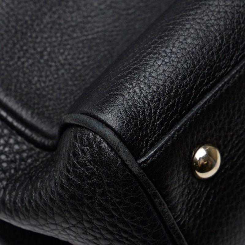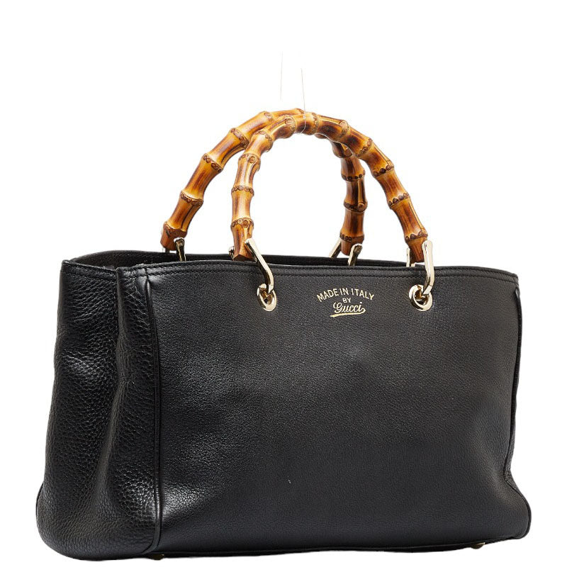 グッチ バンブー ショッパー ミディアム ハンドバッグ ショルダーバッグ 2WAY 323660 ブラック レザー レディース GUCCI 【中古】