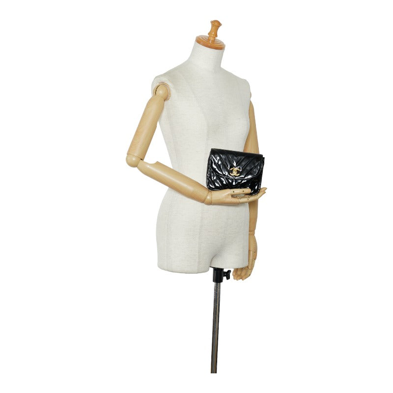 シャネル Vステッチ ウエストバッグ ウエストポーチ ポーチ ブラック エナメル レディース CHANEL 【中古】
