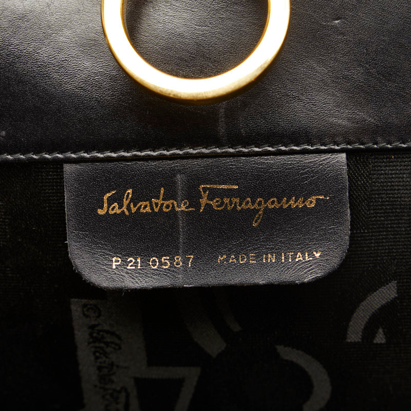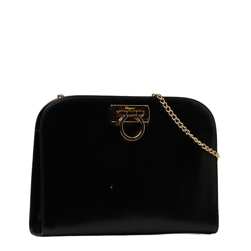 サルヴァトーレフェラガモ ガンチーニ チェーン ショルダーバッグ P210587 ブラック ゴールド レザー レディース Salvatore Ferragamo 【中古】