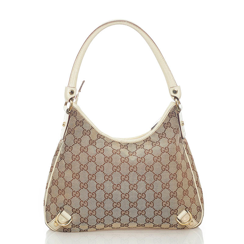 グッチ GGキャンバス ワンショルダーバッグ ブラウン ホワイト キャンバス レザー レディース GUCCI 【中古】