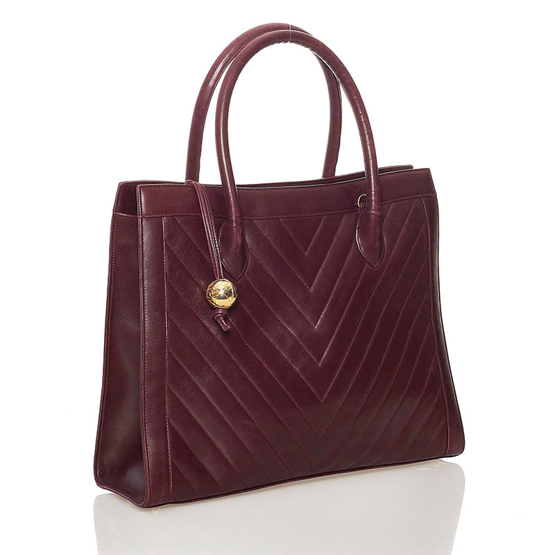 シャネル Vステッチ ハンドバッグ ワインレッド ボルドー ラムスキン レディース CHANEL 【中古】