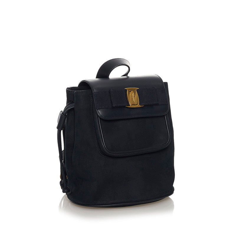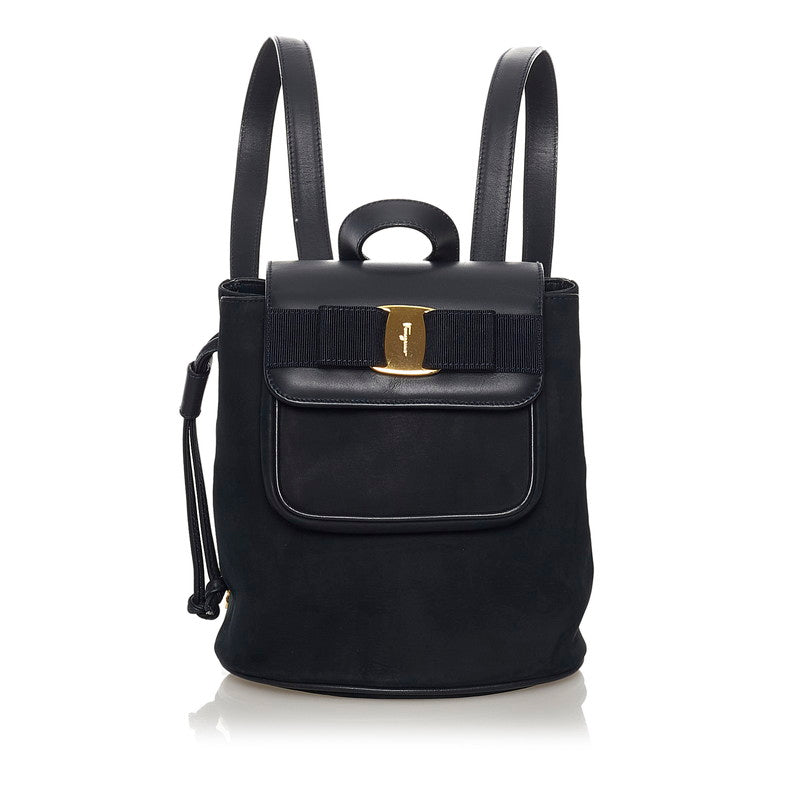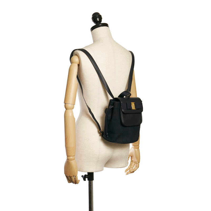 サルヴァトーレフェラガモ ヴァラリボン リュック バックパック AQ-21 6254 ブラック スウェード レザー レディース Salvatore Ferragamo 【中古】