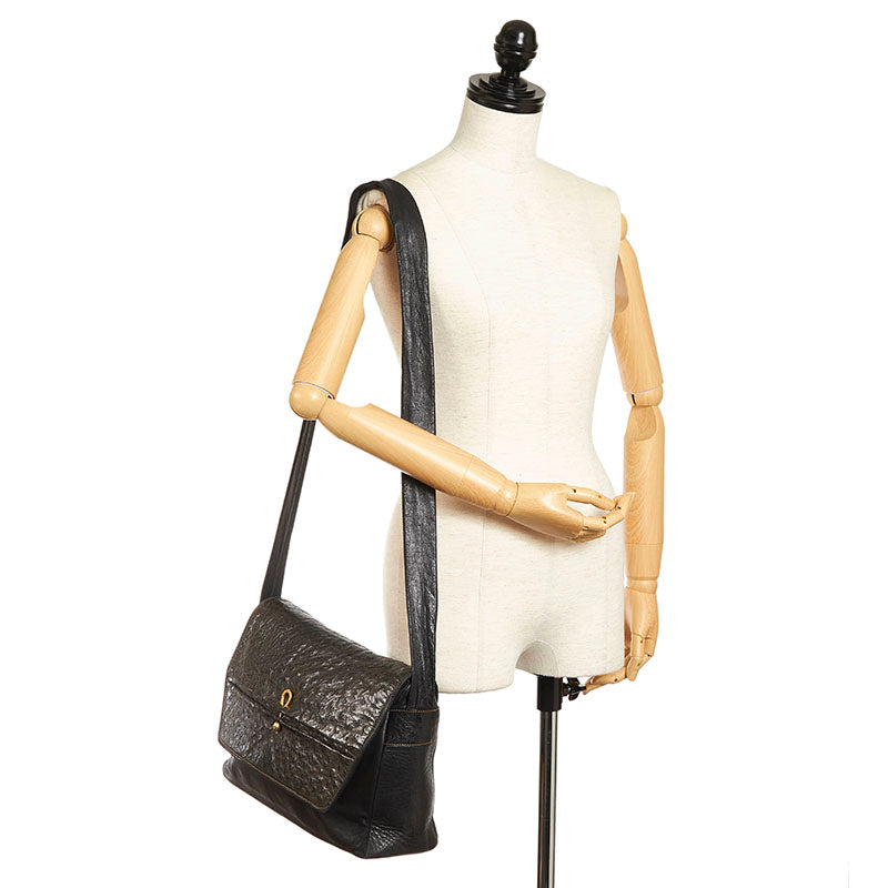 グッチ オールドグッチ オーストリッチ 斜め掛け ショルダーバッグ 001 0438 400 ブラック レザー レディース GUCCI 【中古】