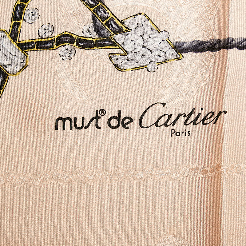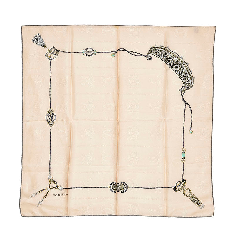 カルティエ マストライン スカーフ ピンクベージュ グレー シルク レディース CARTIER 【中古】