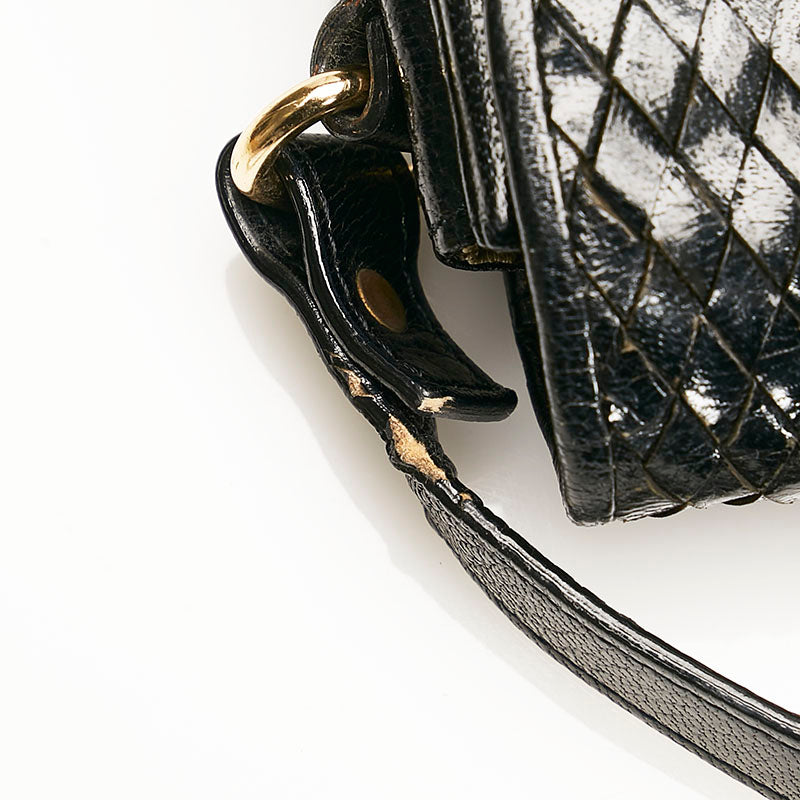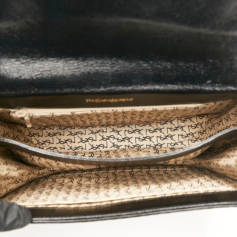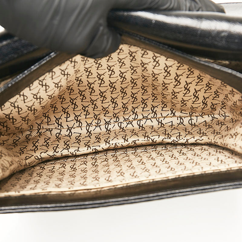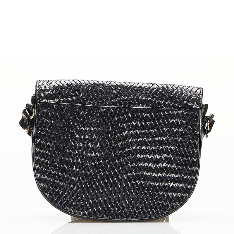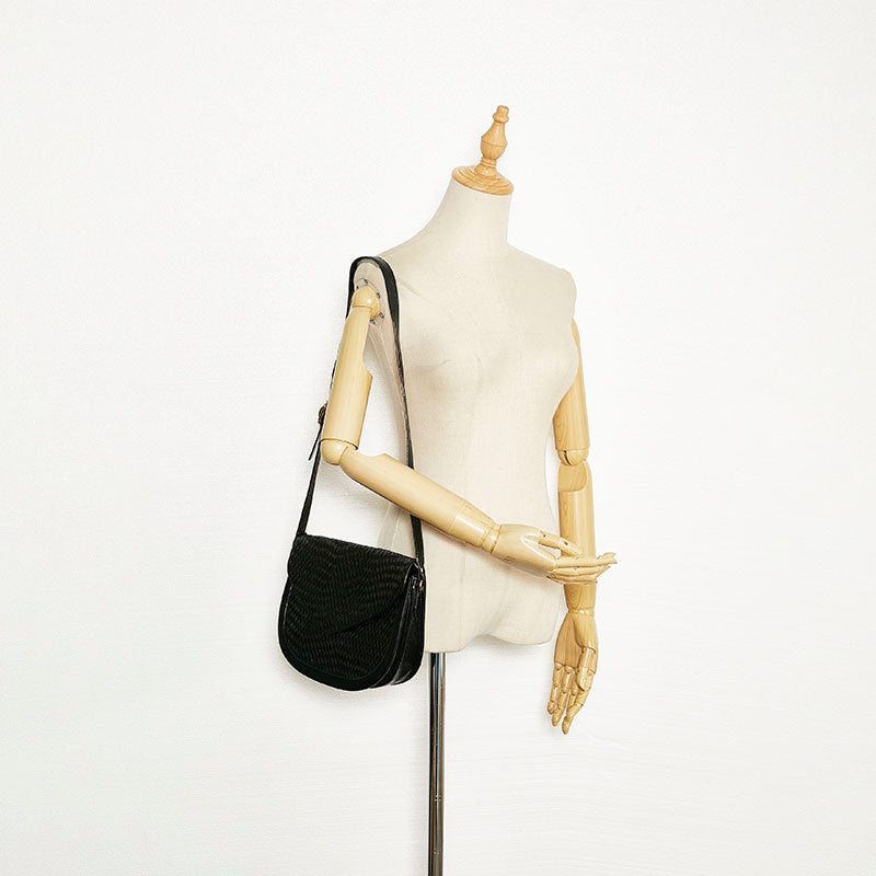 サンローラン ヴィンテージ 編み込み 斜め掛け ショルダーバッグ ブラック レザー レディース SAINT LAURENT 【中古】