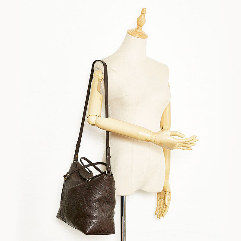 グッチ マイクロGG グッチシマ ハンドバッグ ショルダーバッグ 2WAY 353120 ブラウン レザー レディース GUCCI 【中古】