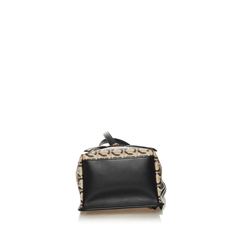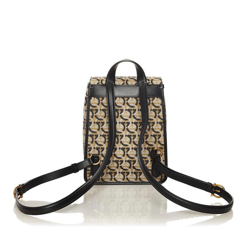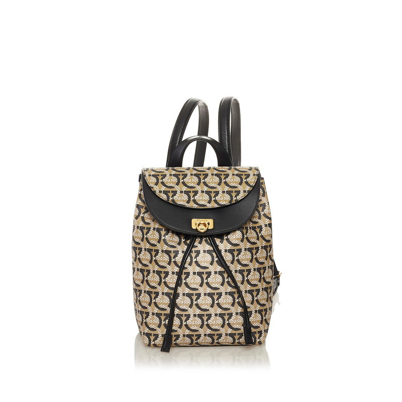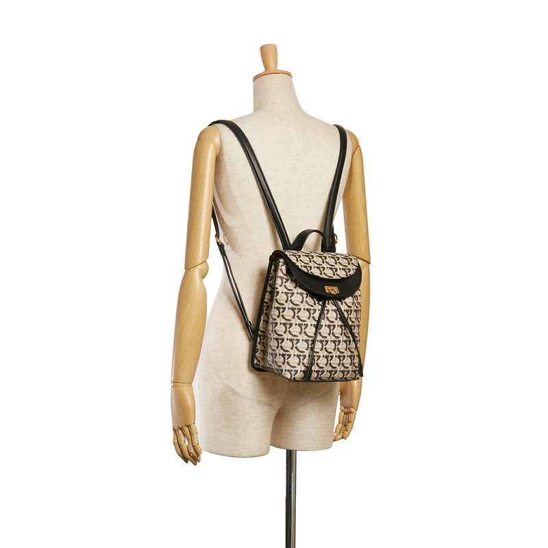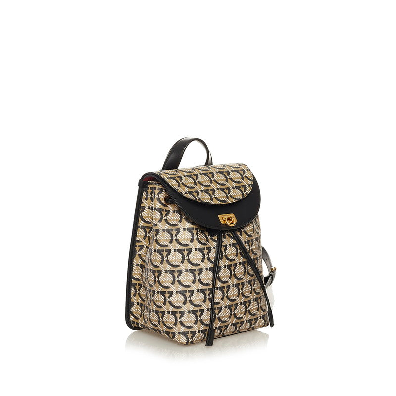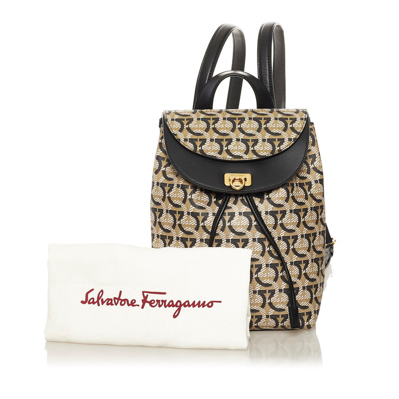 サルヴァトーレフェラガモ ガンチーニ リュック バックパック FZ-21 H987 ベージュ ブラック PVC レザー レディース Salvatore Ferragamo 【中古】