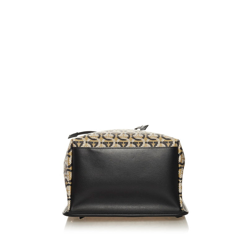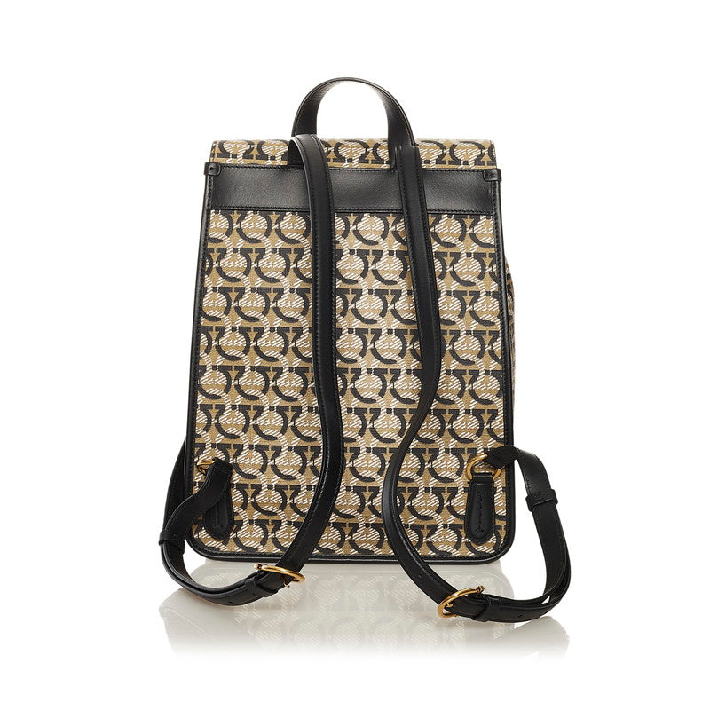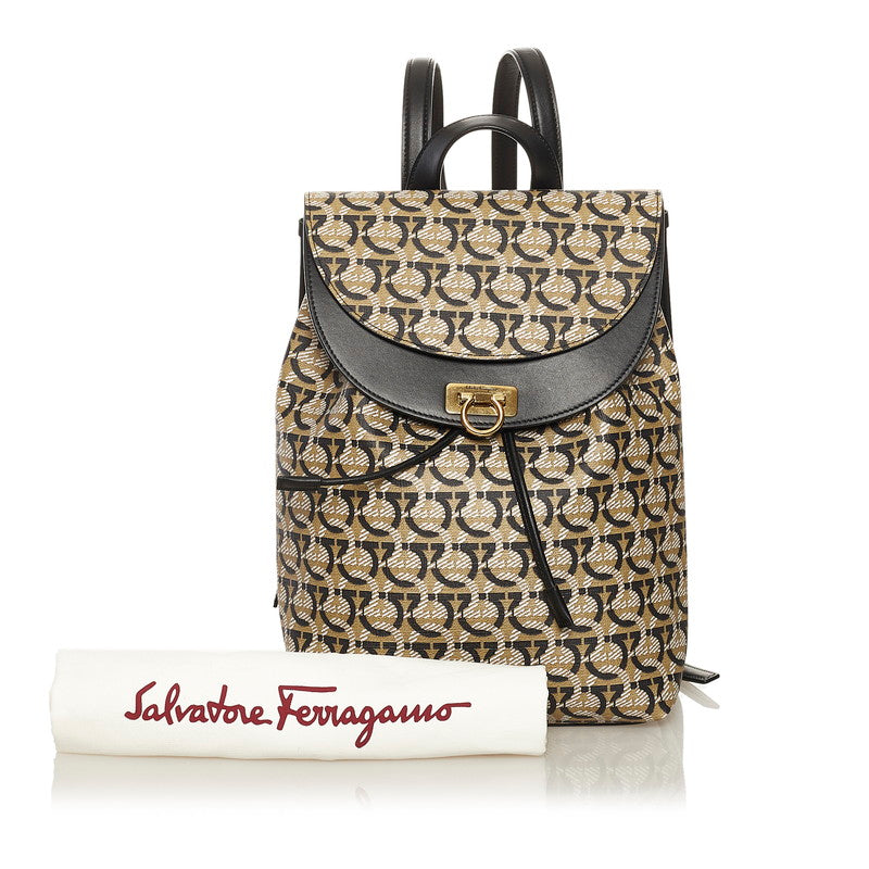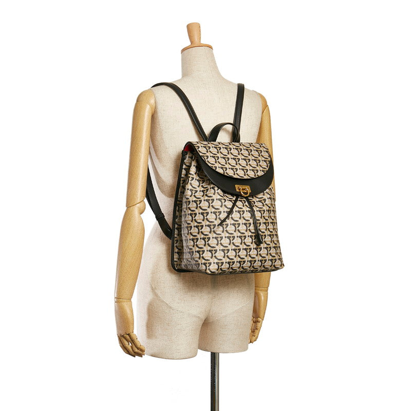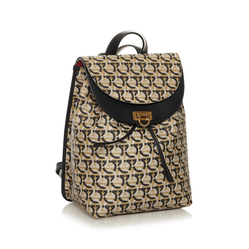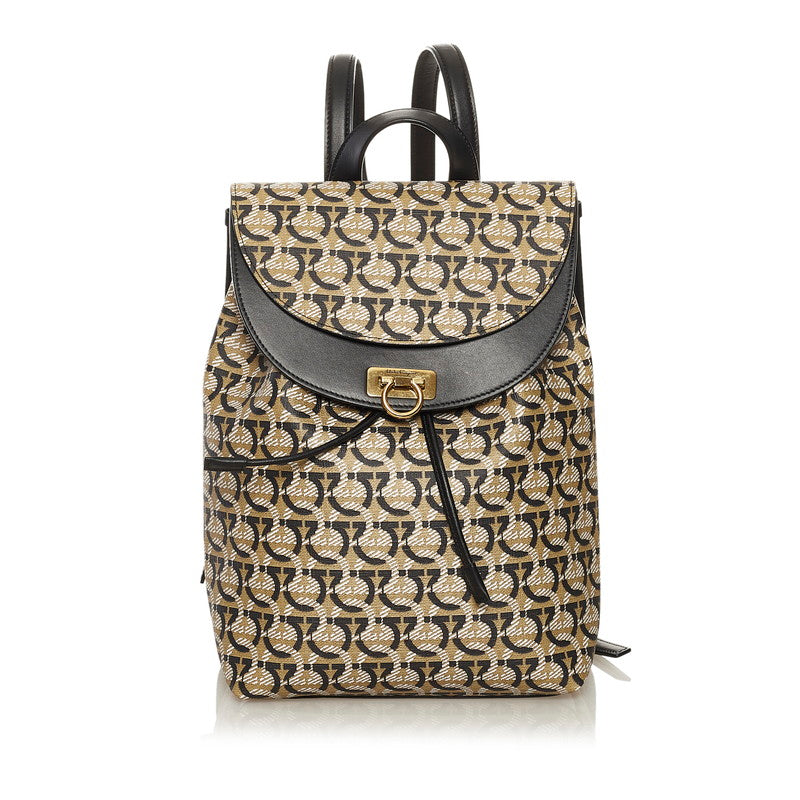 サルヴァトーレフェラガモ ガンチーニ リュック バックパック FZ-21 H988 ベージュ ブラック PVC レザー レディース Salvatore Ferragamo 【中古】