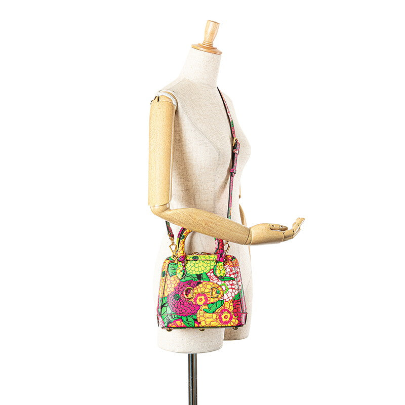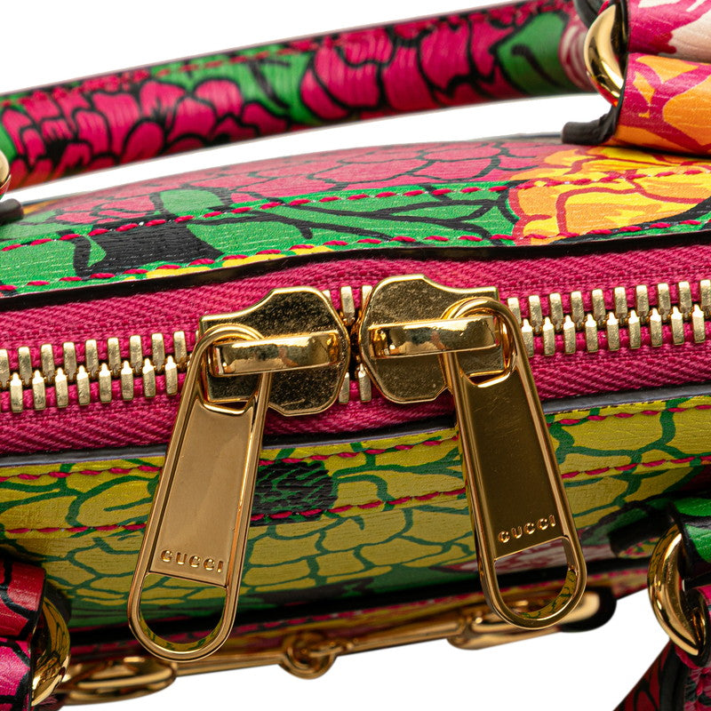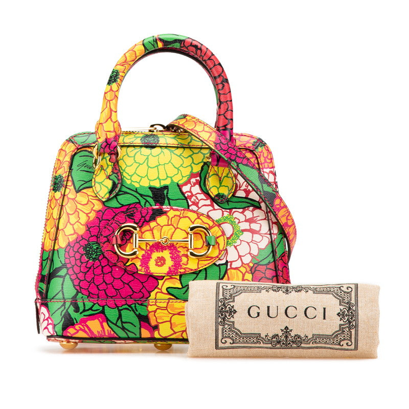 グッチ ホースビット1955 ケンスコット フラワープリント ハンドバッグ ショルダーバッグ 2WAY 640716 ピンク イエロー マルチカラー レザー レディース GUCCI 【中古】
