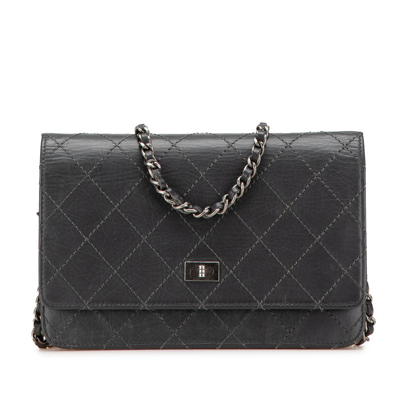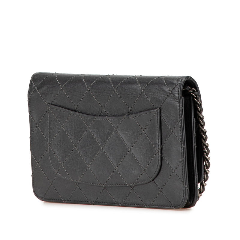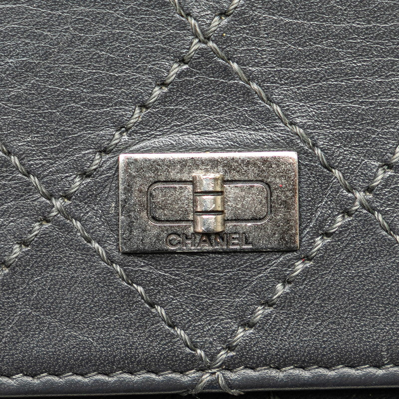シャネル 2.55 ワイルドステッチ チェーンウォレット ショルダーバッグ A69206 グレー レザー レディース CHANEL 【中古】