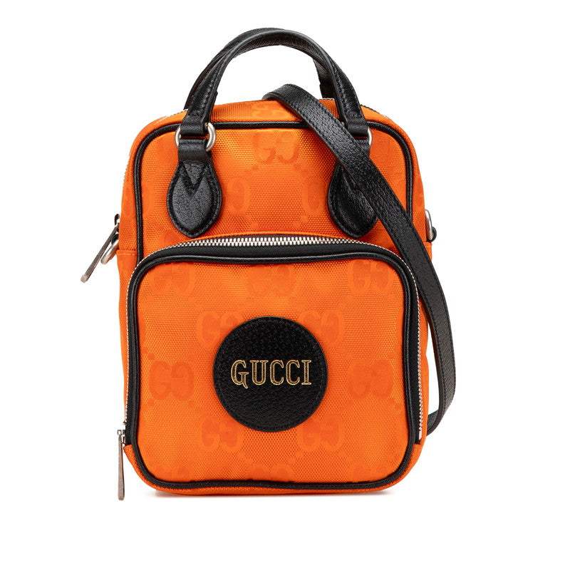 グッチ オフザグリッド ハンドバッグ ショルダーバッグ 2WAY 625850 オレンジ ブラック ナイロン レザー レディース GUCCI 【中古】