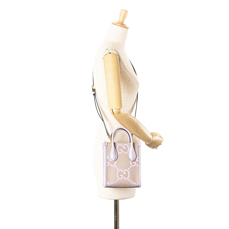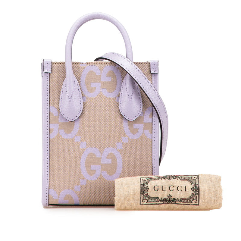 グッチ ジャンボGG ミニトート ハンドバッグ ショルダーバッグ 2WAY 671623 パープル ベージュ キャンバス レザー レディース GUCCI 【中古】