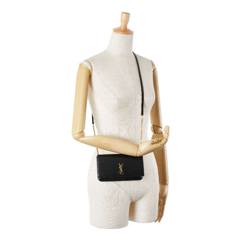 サンローラン YSLロゴ ショルダーバッグ スマホポーチ ブラック レザー レディース SAINT LAURENT 【中古】