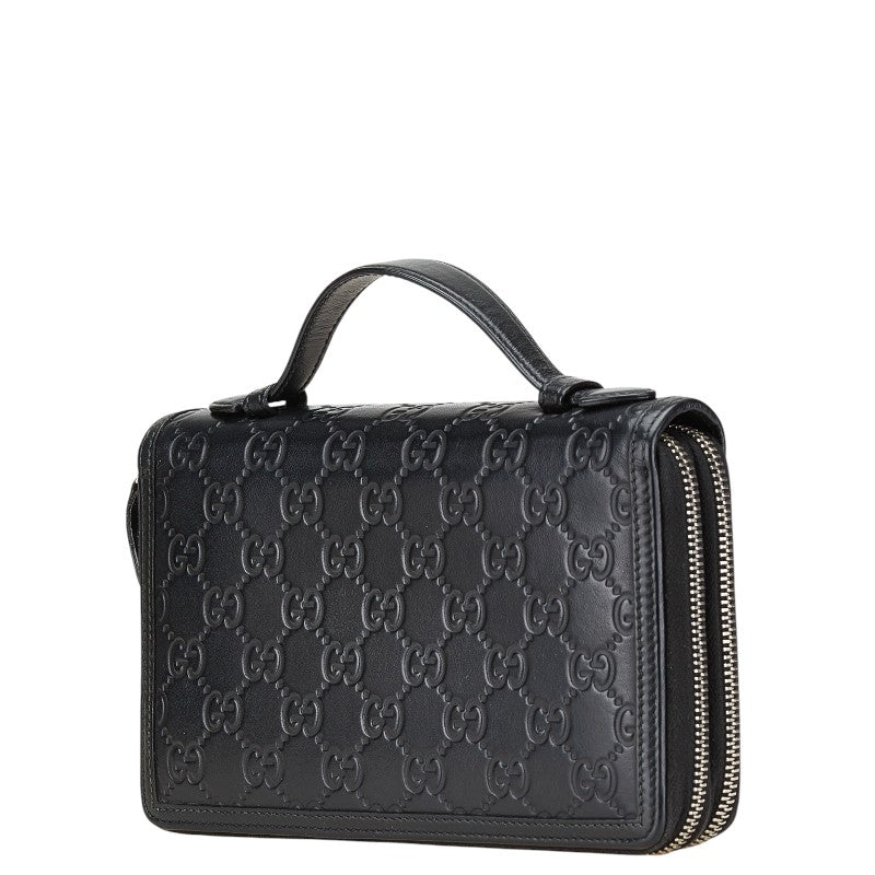 グッチ グッチシマ トラベルケース 長財布 ラウンドファスナー 395474 ブラック レザー メンズ GUCCI 【中古】