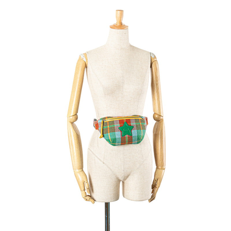 グッチ チルドレン チェック スター ウエストバッグ 502095 グリーン マルチカラー キャンバス レザー レディース GUCCI 【中古】