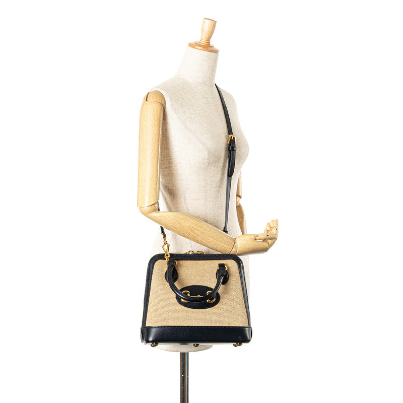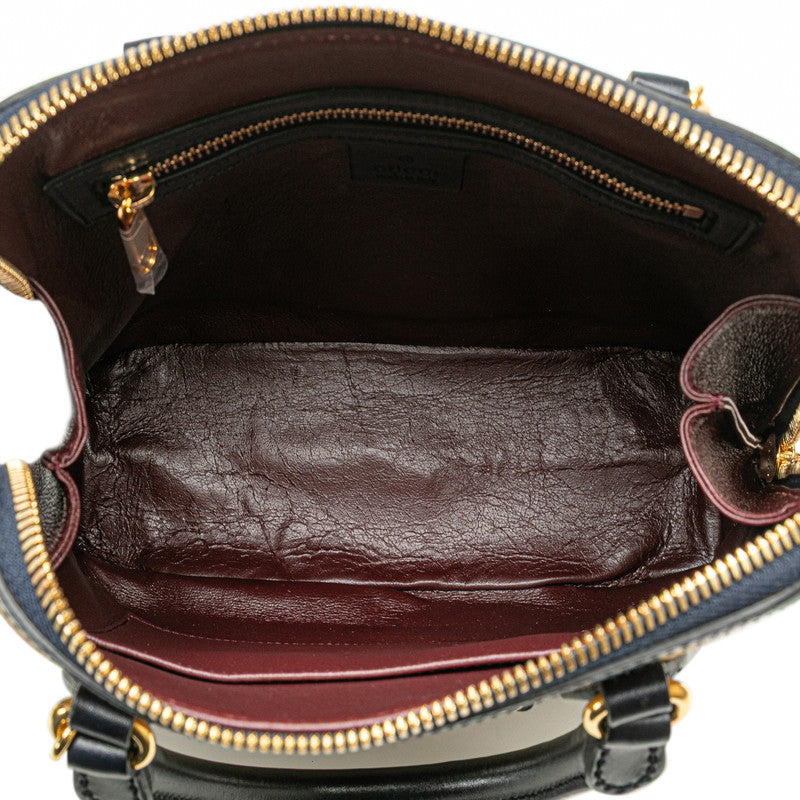 グッチ ホースビット ハンドバッグ ショルダーバッグ 2WAY 621220 ネイビー レッド キャンバス レザー レディース GUCCI 【中古】