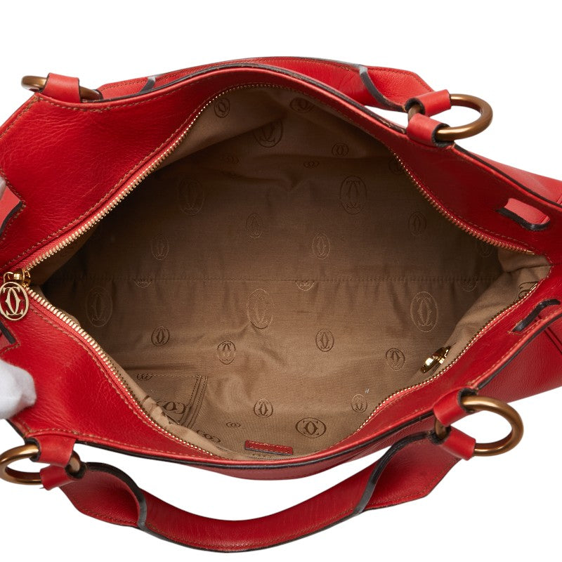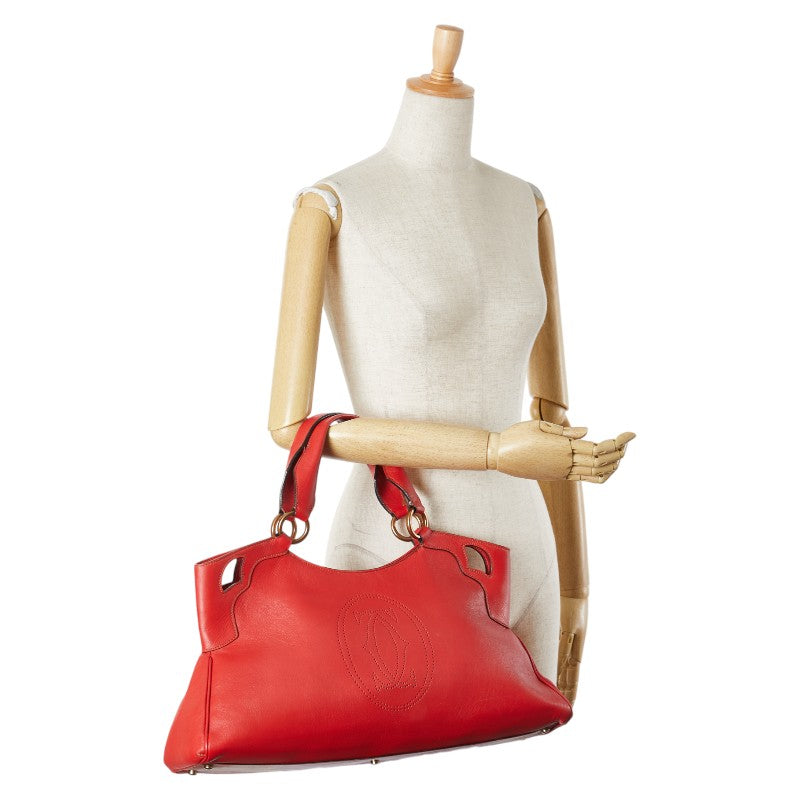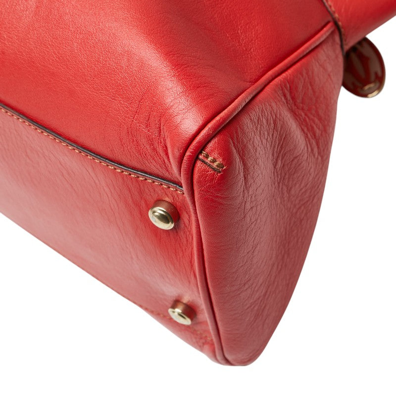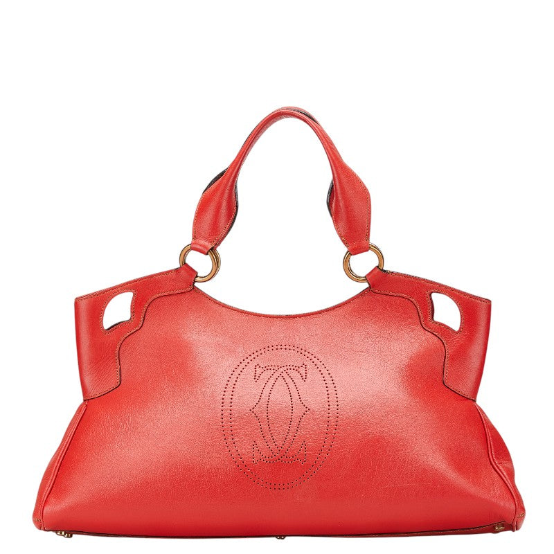 カルティエ マルチェロ パンチングロゴ ハンドバッグ トートバッグ レッド レザー レディース CARTIER 【中古】