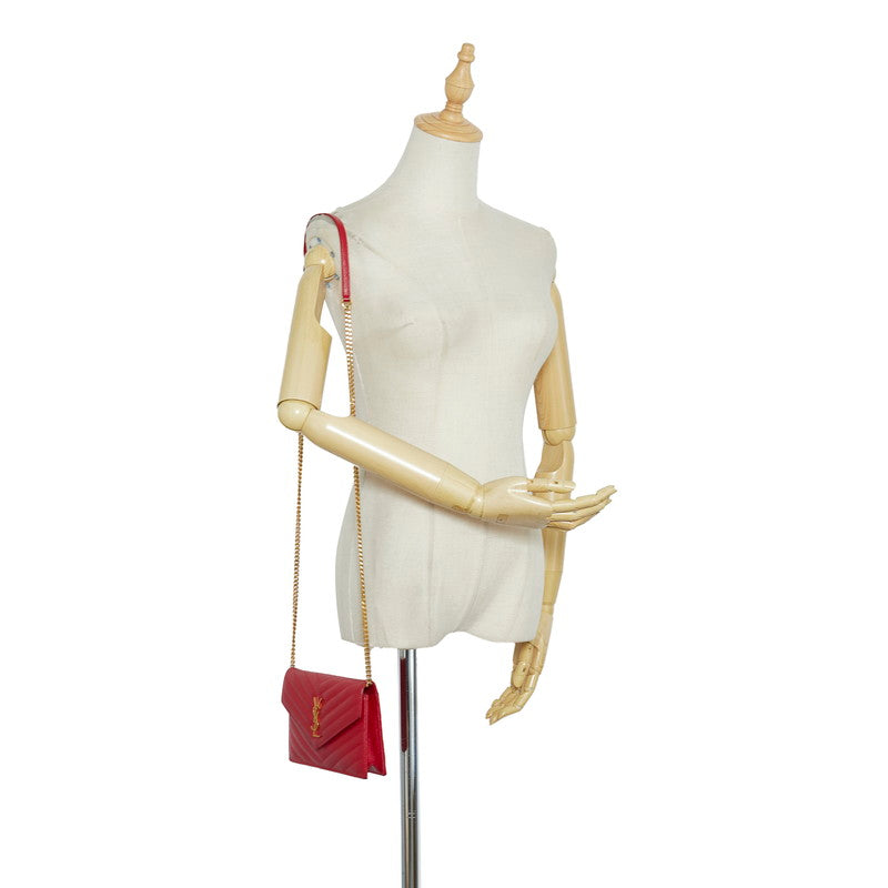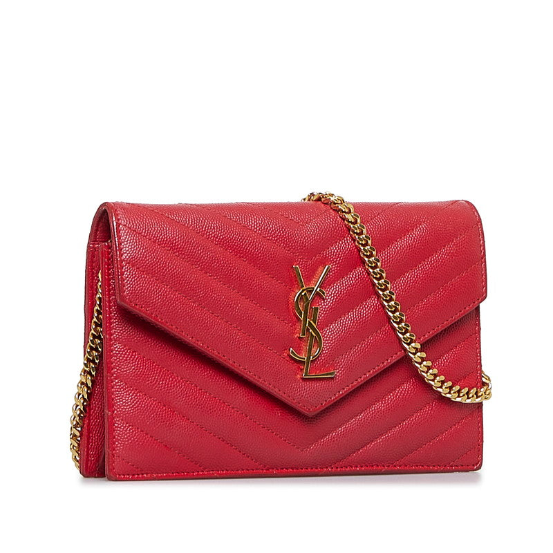 サンローラン YSL カサンドラ キルティング チェーンウォレット ショルダーバッグ 2WAY GNC393953 レッド レザー レディース SAINT LAURENT 【中古】