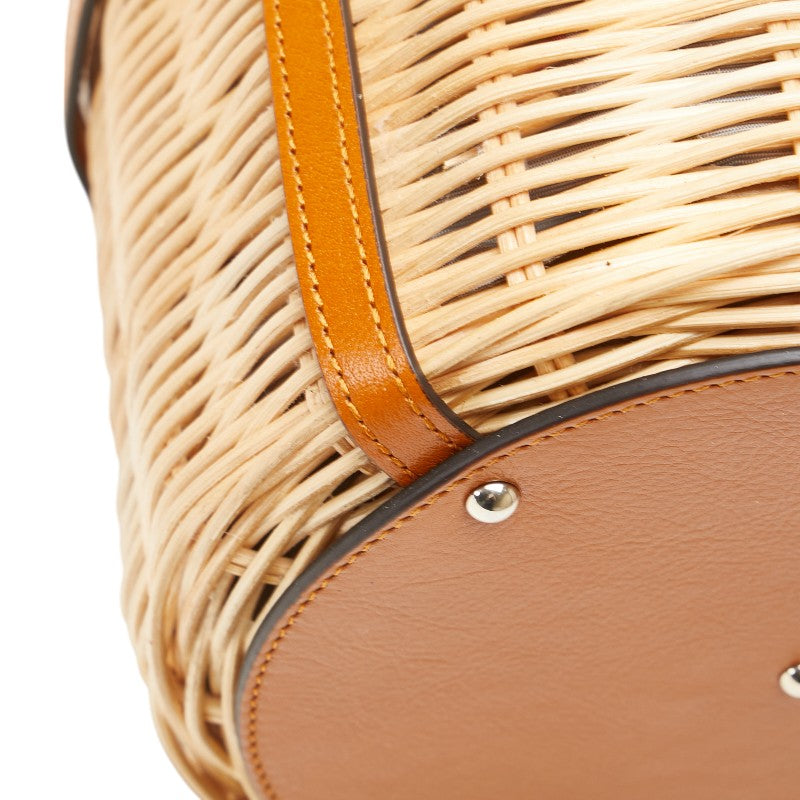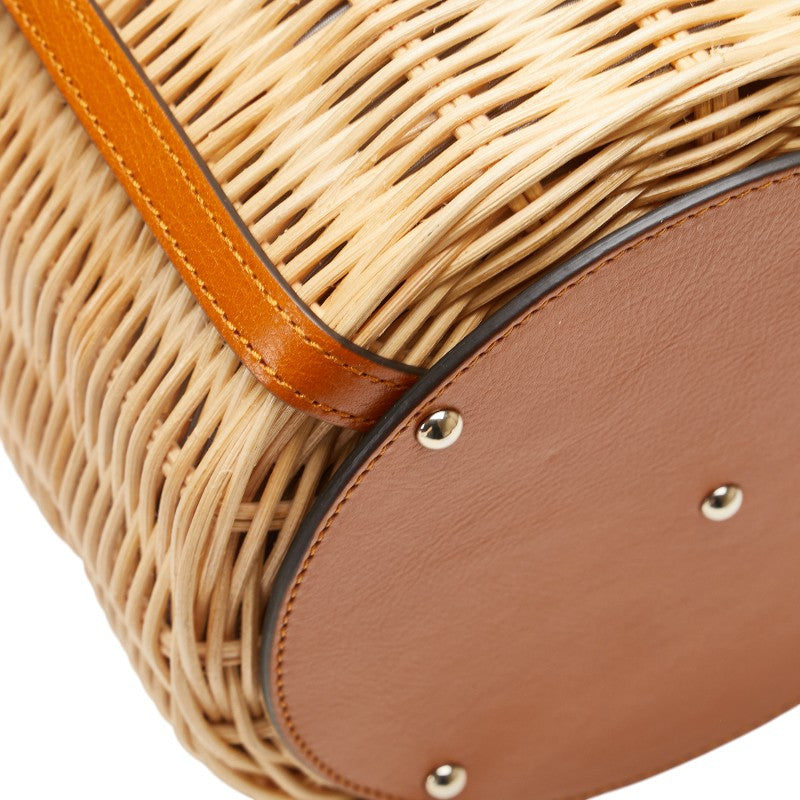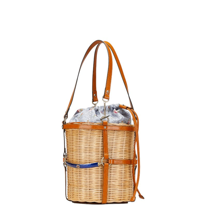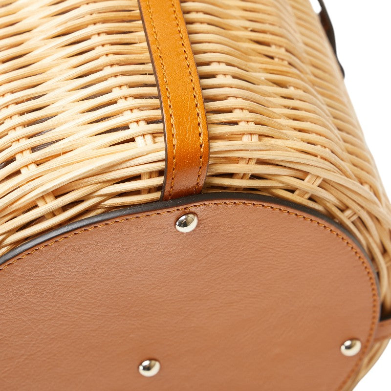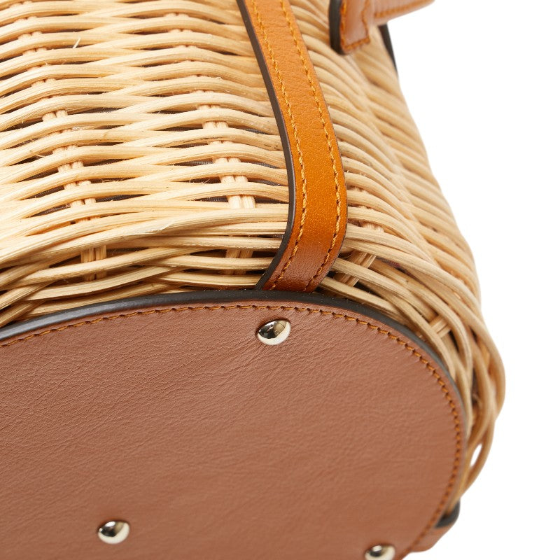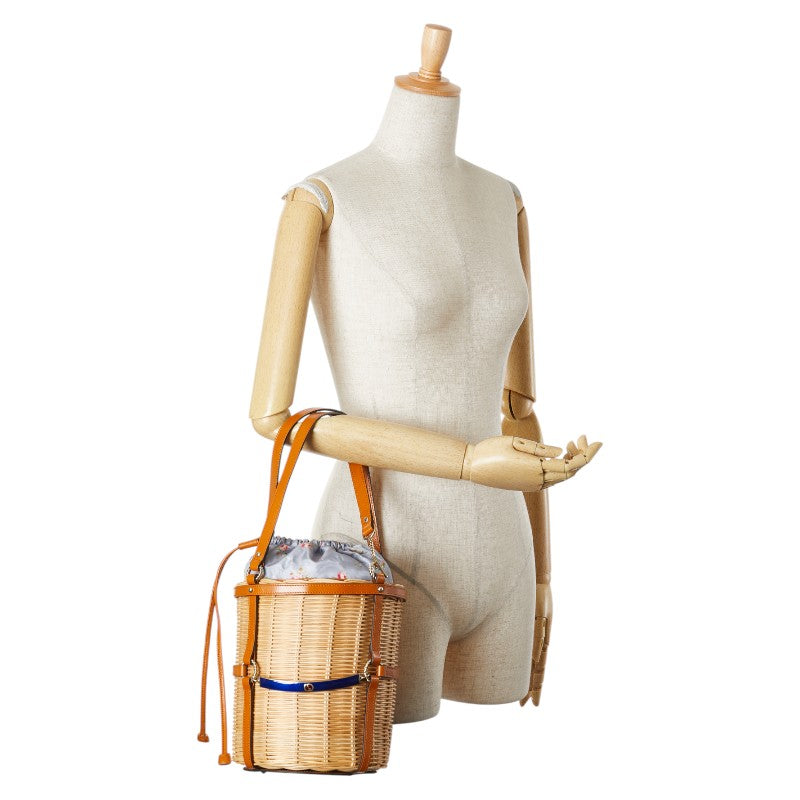 グッチ フラワー 花 かごバッグ ハンドバッグ 524830 ベージュ ブラウン レザー ウィッカー レディース GUCCI 【中古】