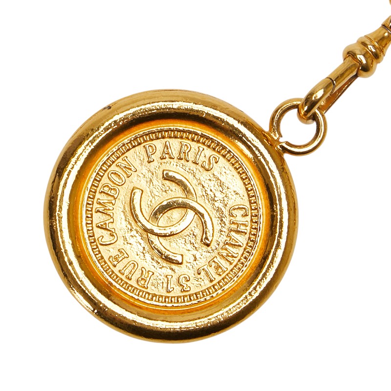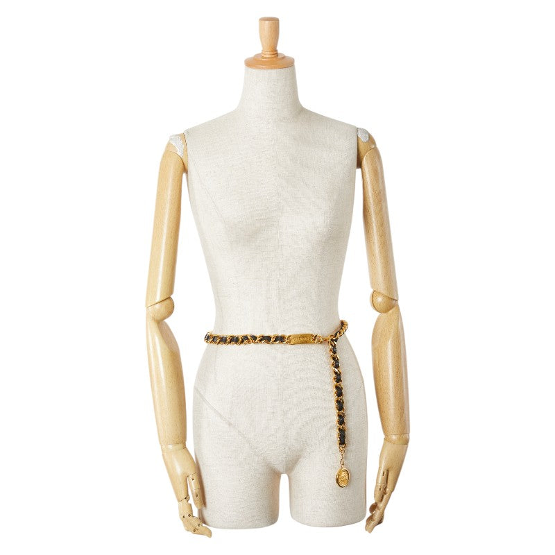 シャネル 31 RUE CAMBON カンボン メダリオン ココマーク チェーン ベルト ゴールド ブラック メッキ レザー レディース CHANEL 【中古】