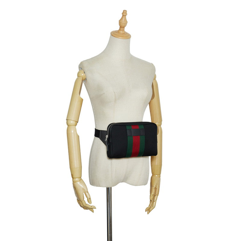 グッチ シェリーライン ウエストバッグ ボディバッグ 630919 ブラック ナイロン レザー レディース GUCCI 【中古】