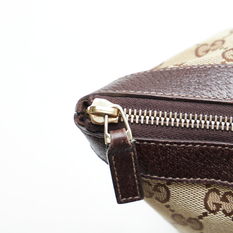 外側⇒キャンバスにシミ、レザーにヨレ・線キズ・スレ サイド⇒型崩れ 底面⇒線キズ・スレ・ヤケ・押し跡 ハンドル⇒ヨレ・スレ・コバスレ・コバひび割れ 金具⇒キズ・クスミ・底鋲にキズ 開閉口⇒レザーにスレ・ヤケ・コバスレ 内側⇒メインとポケットにスレ・薄汚れ・色あせ、メインとポケット開閉口付近に色あせ・シワ・押し跡 |
