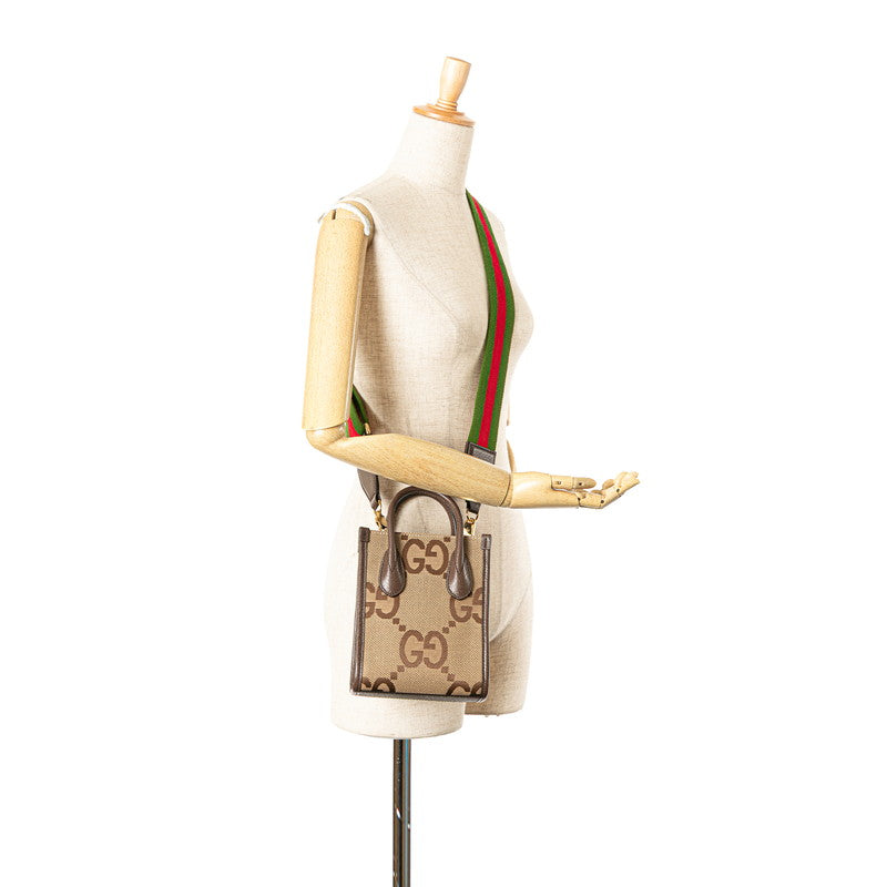 グッチ ジャンボGG ミニトートバッグ ショルダーバッグ 2WAY 699406 ベージュ ブラウン キャンバス レザー レディース GUCCI 【中古】