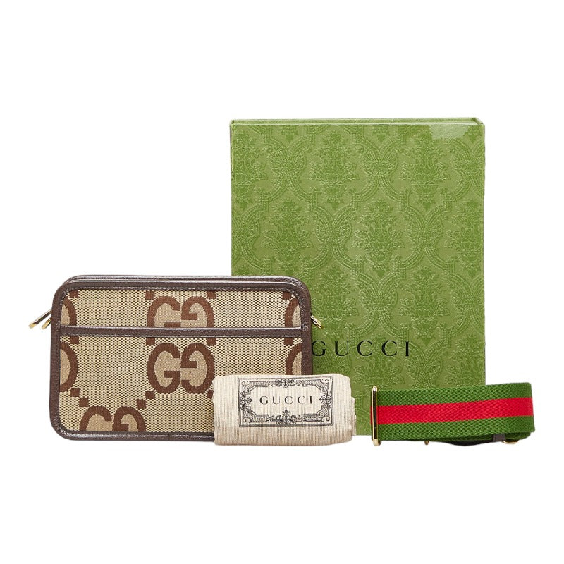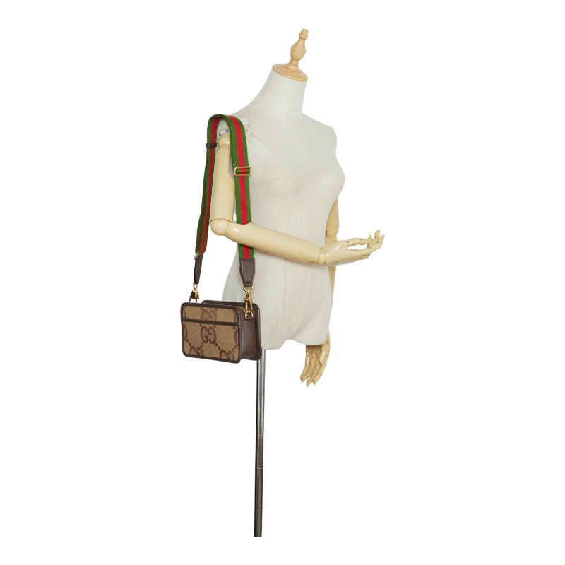 グッチ ジャンボGG ミニバッグ 斜め掛け ショルダーバッグ 696075 キャメル エボニー キャンバス レザー レディース GUCCI 【中古】