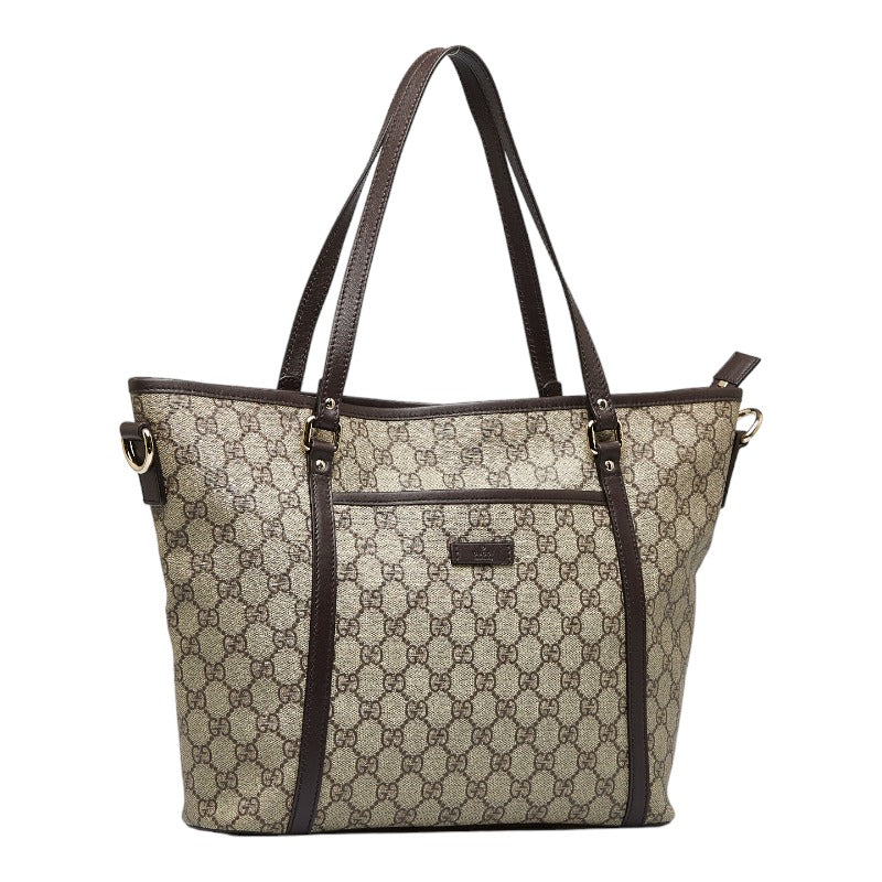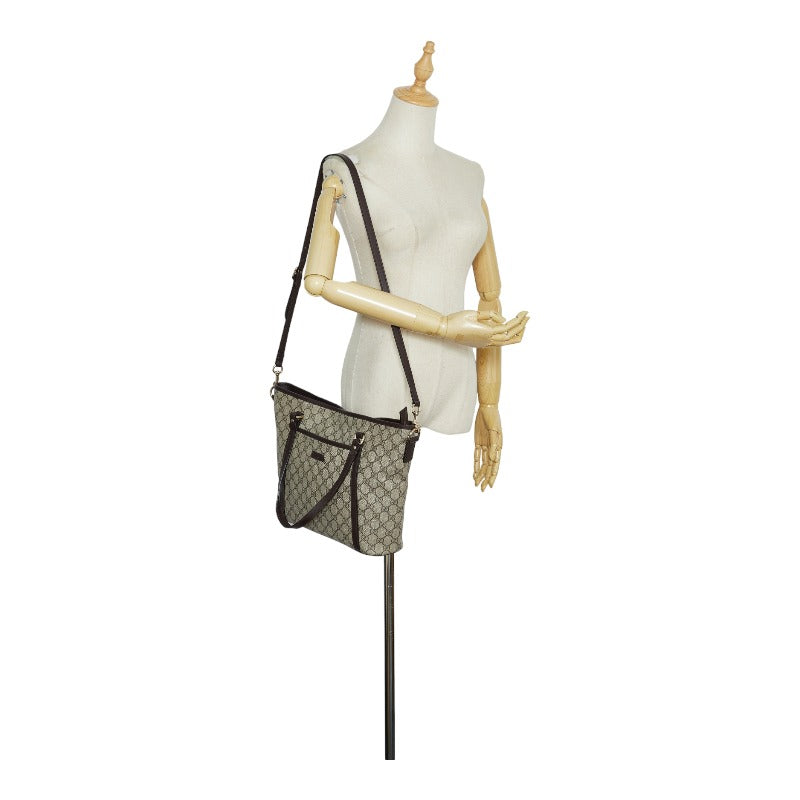 グッチ GGスプリーム トートバッグ ショルダーバッグ 2WAY 388929 ベージュ ブラウン PVC レザー レディース GUCCI 【中古】