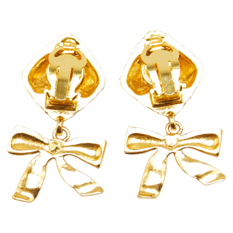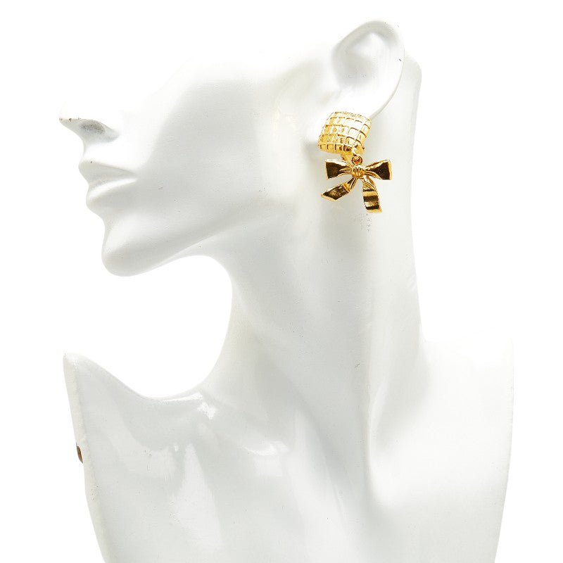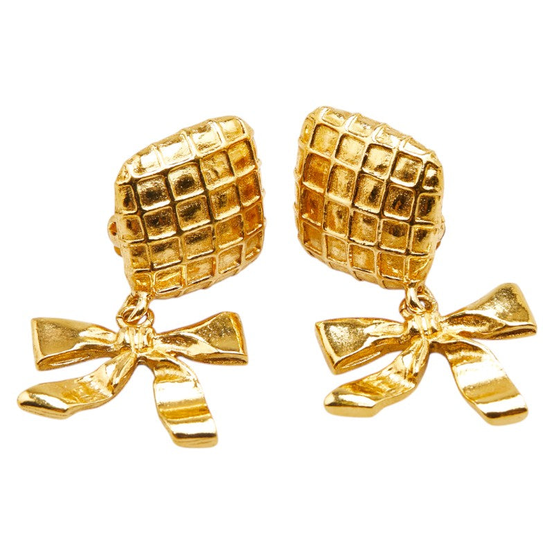 シャネル ひし形 リボン スイング イヤリング ゴールド メッキ レディース CHANEL 【中古】