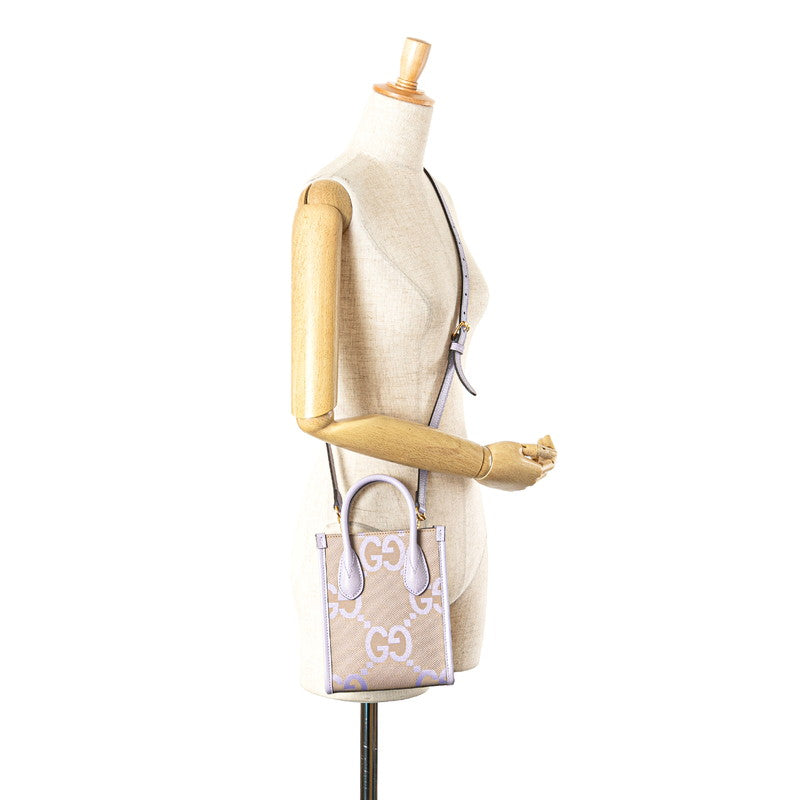 グッチ ジャンボGG ミニトートバッグ ショルダーバッグ 2WAY 671623 パープル ベージュ キャンバス レザー レディース GUCCI 【中古】