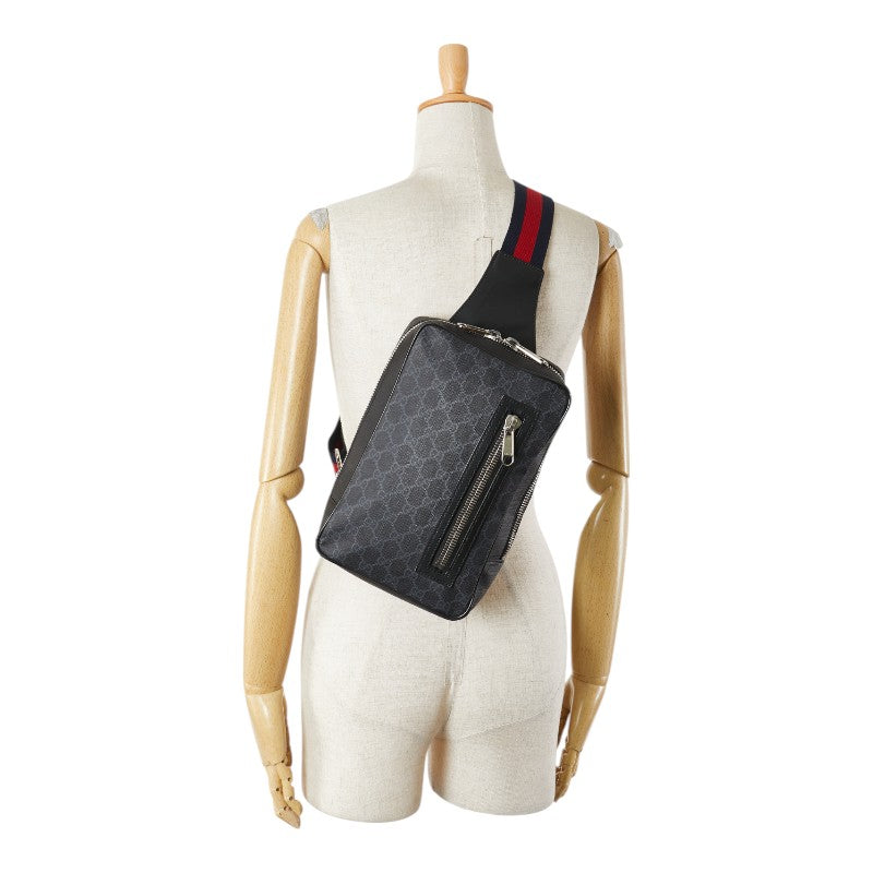 グッチ GGスプリーム ボディバッグ ベルトバッグ 478325 ブラック グレー PVC レザー メンズ GUCCI 【中古】