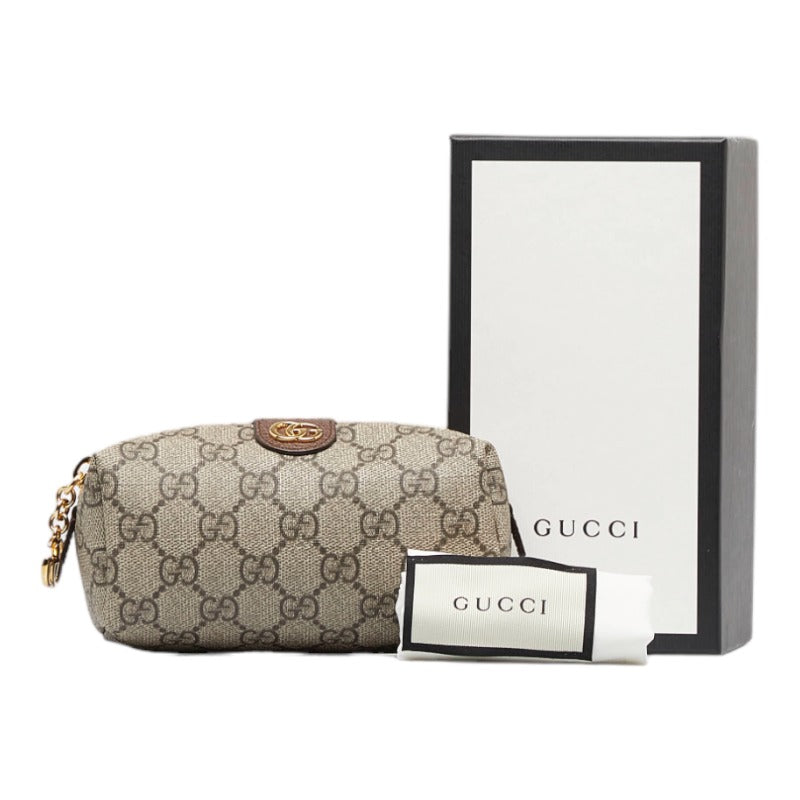 グッチ オフィディア GGスプリーム ポーチ 548394 ベージュ ブラウン PVC レザー レディース GUCCI 【中古】