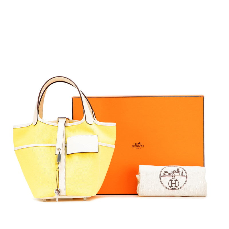 エルメス ピコタンロック カーゴPM ハンドバッグ ジョーヌシトロン ナタ イエロー アイボリー ヴォースイフト トワルゴエラン レディース HERMES 【中古】