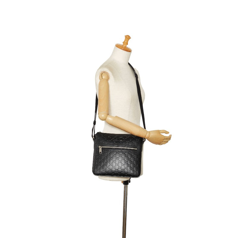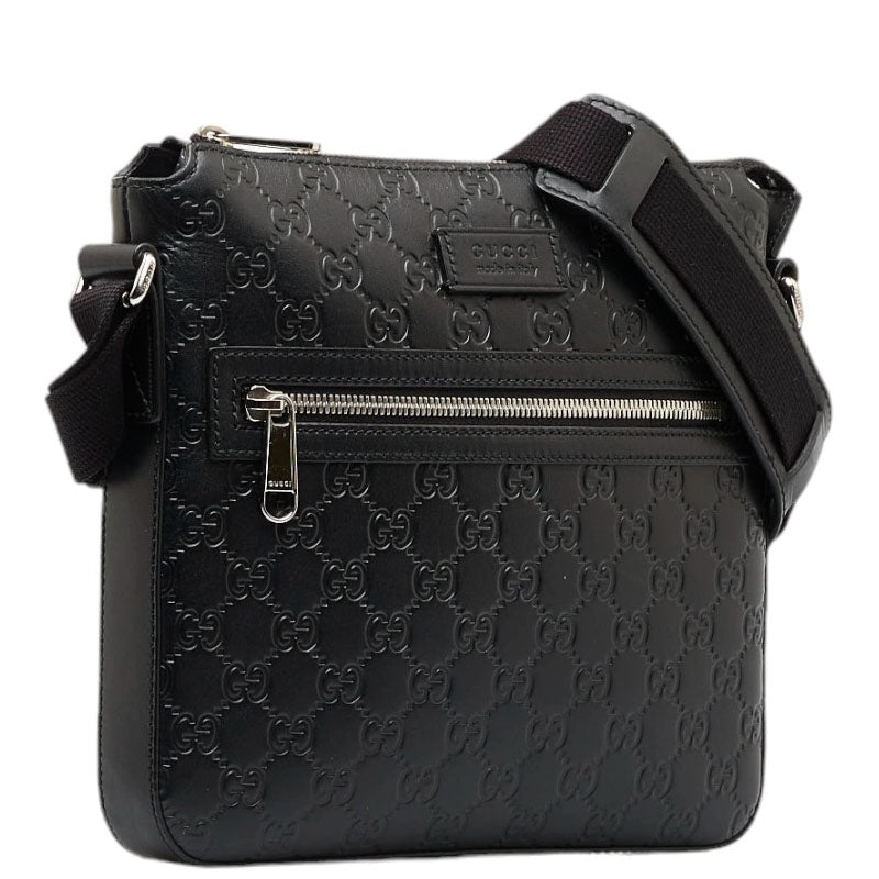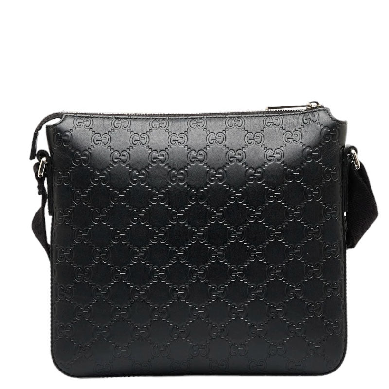グッチ グッチシマ シルバー金具 斜め掛け ショルダーバッグ 406410 ブラック レザー レディース GUCCI 【中古】