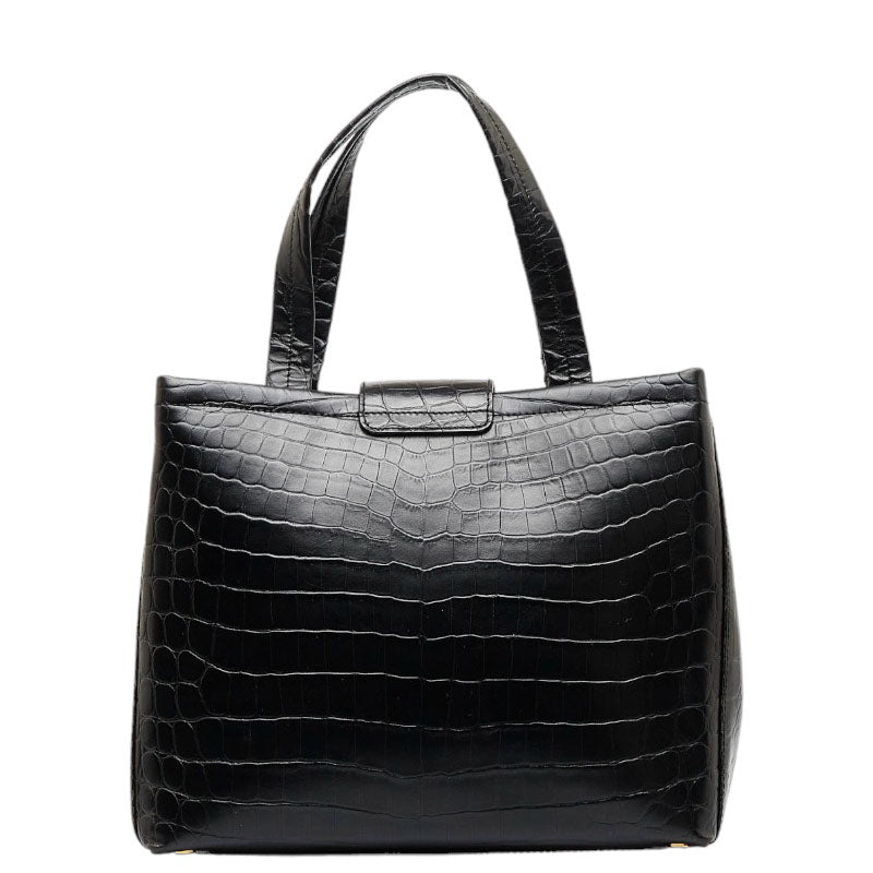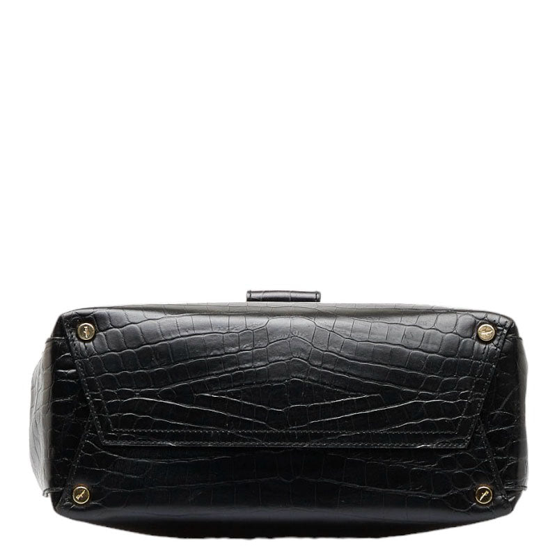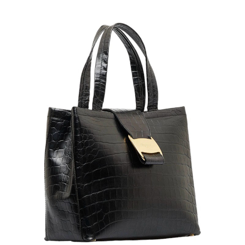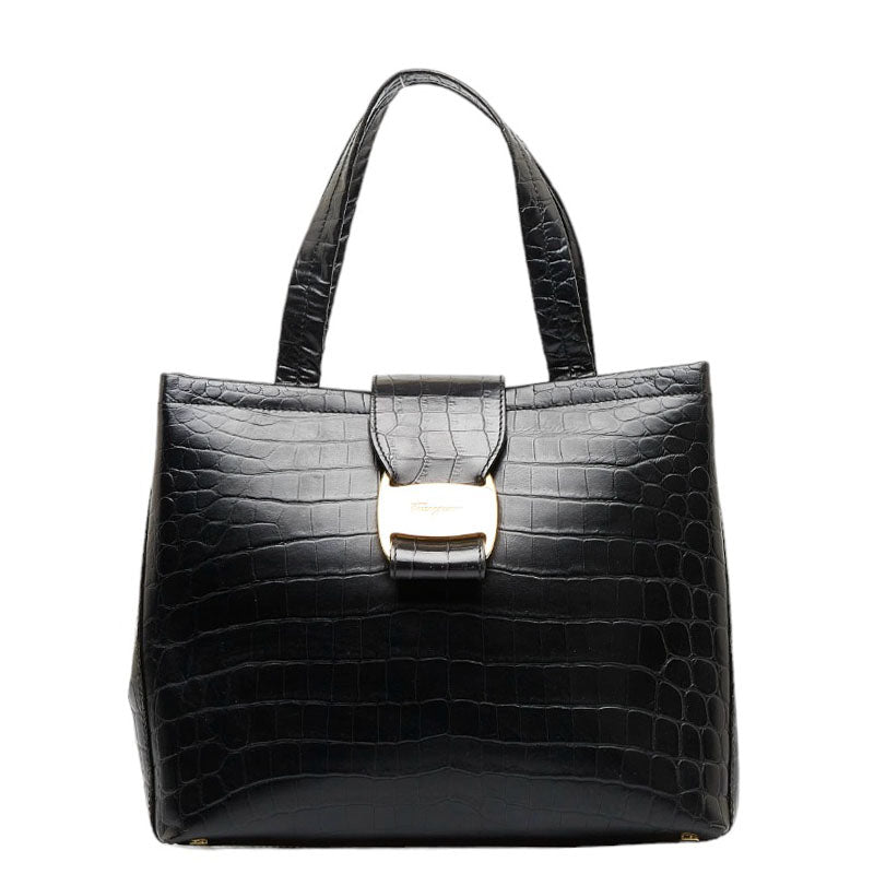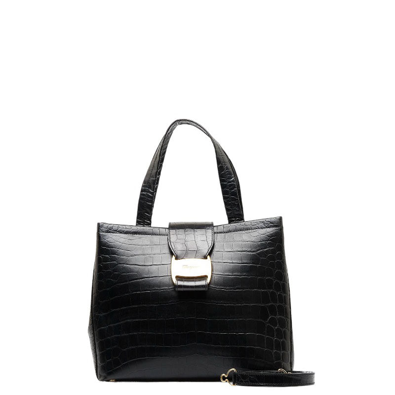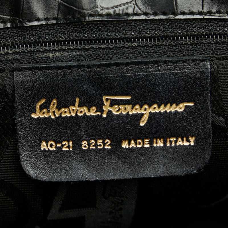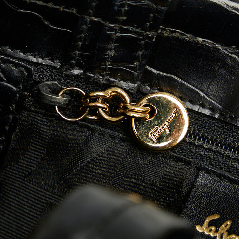サルヴァトーレフェラガモ ヴァラ クロコ型押し ゴールド金具 ハンドバッグ ショルダーバッグ 2WAY AG-21 8252 ブラック レザー レディース Salvatore Ferragamo 【中古】