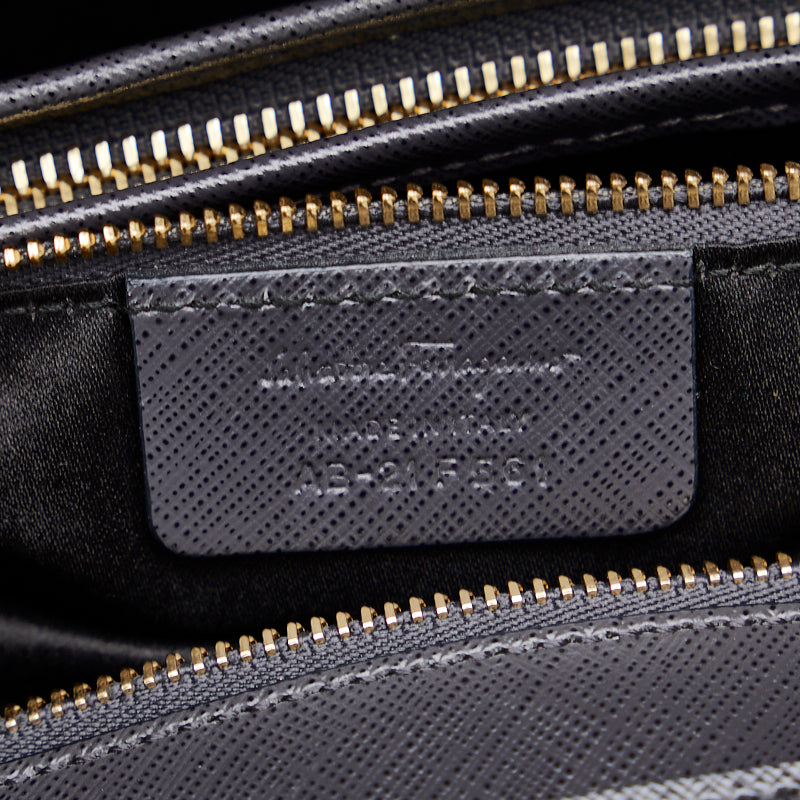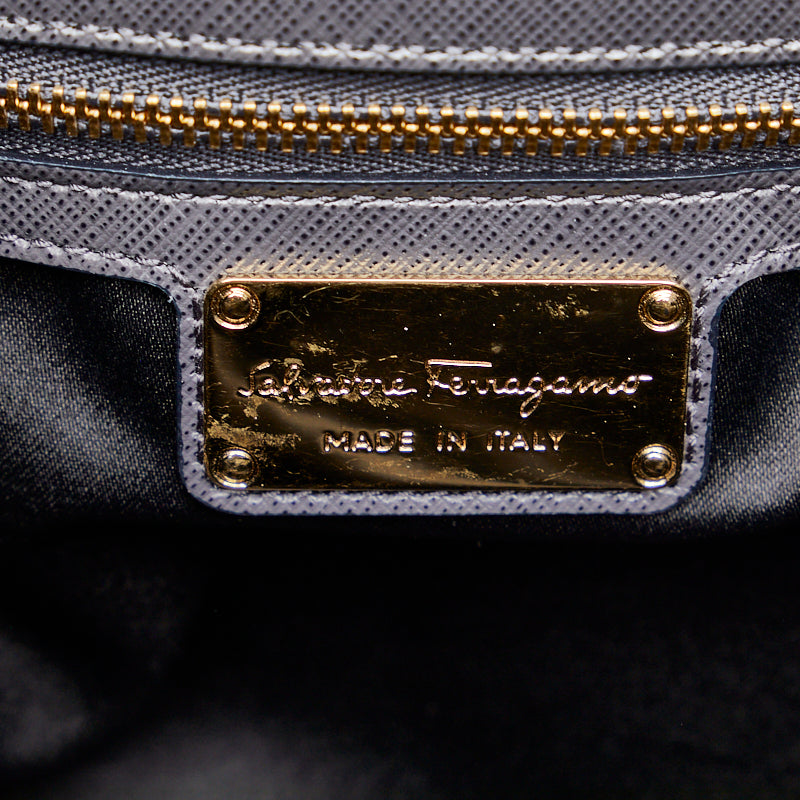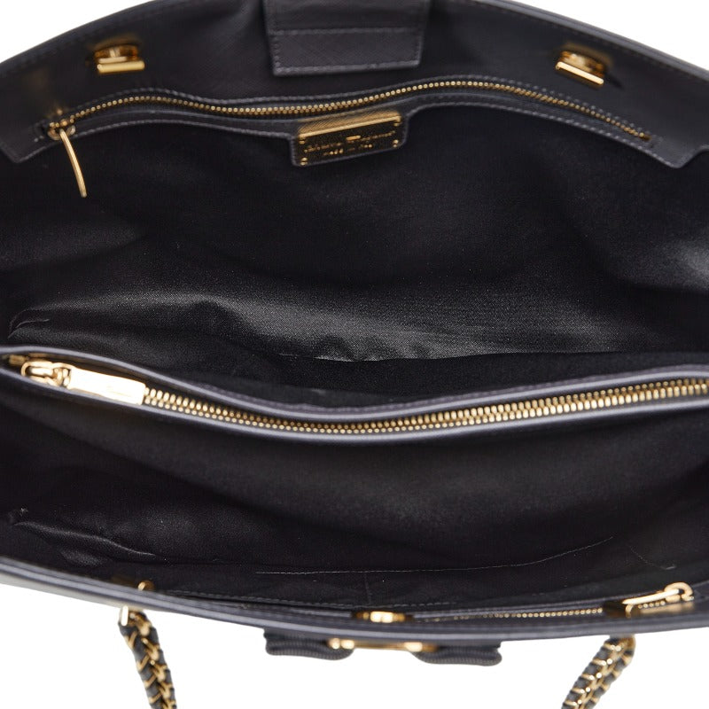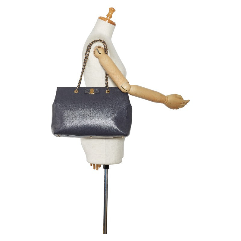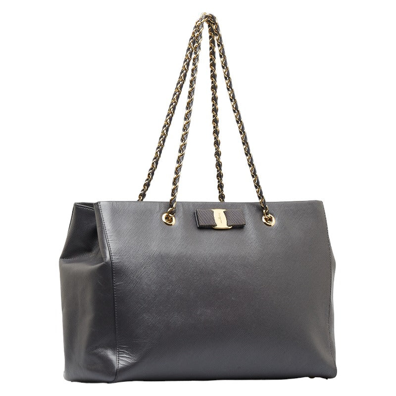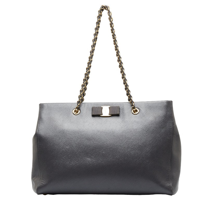 サルヴァトーレフェラガモ ヴァラリボン ゴールド金具 チェーン ショルダーバッグ トートバッグ AB-21 F561 グレー レザー レディース Salvatore Ferragamo 【中古】