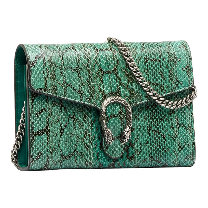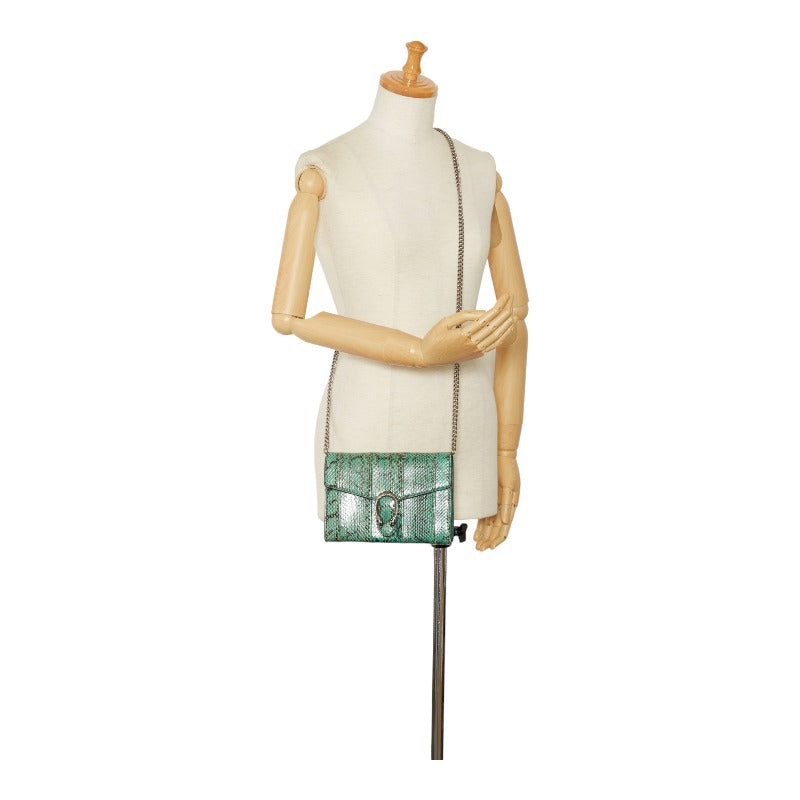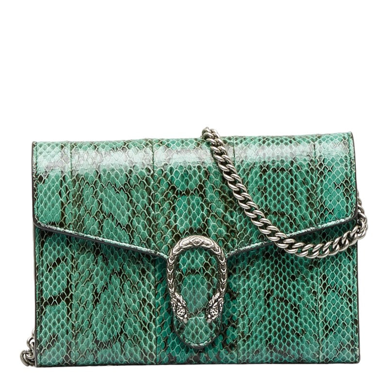 グッチ ディオニュソス 斜め掛け チェーンウォレット ショルダーバッグ 401231 グリーン PVC レザー パイソン レディース GUCCI 【中古】