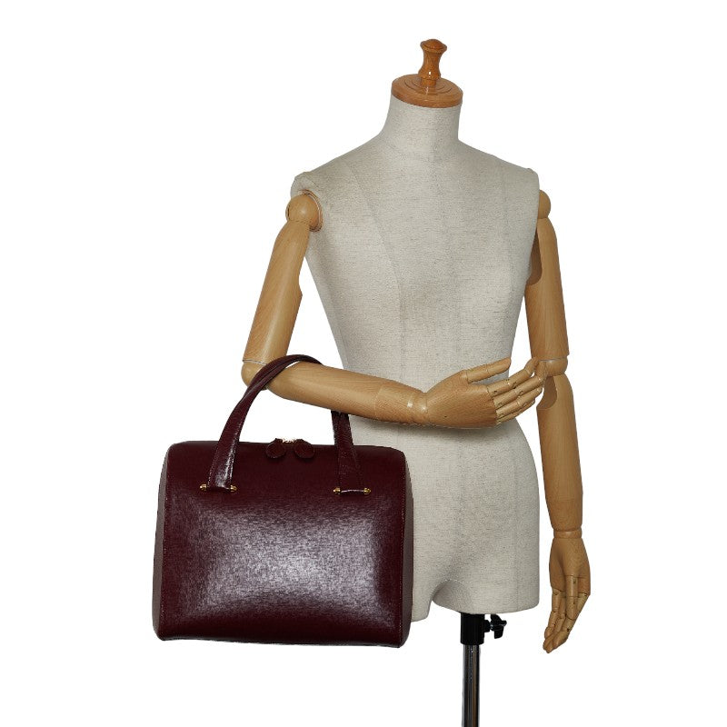 カルティエ マストライン ハンドバッグ ミニ ボストンバッグ ボルドー ワインレッド レザー レディース CARTIER 【中古】