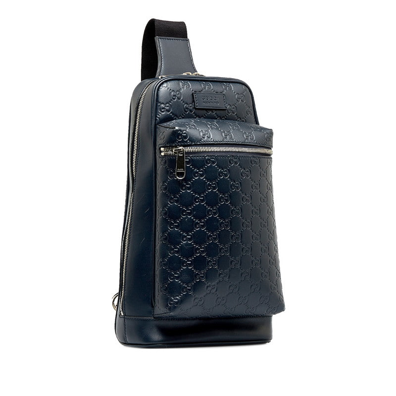 グッチ グッチシマ JAPAN EXCLUSIVE ボディバッグ ウエストバッグ ショルダーバック 450970 ネイビー レザー メンズ GUCCI 【中古】