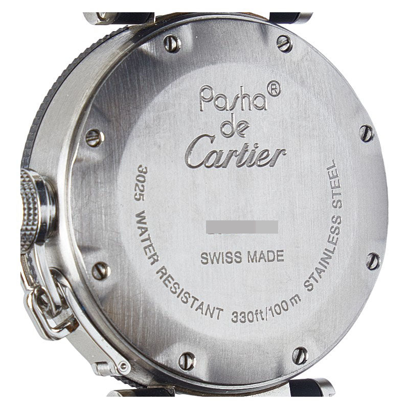 カルティエ パシャ シータイマー 腕時計 W3140003 クオーツ ブラック文字盤 ステンレススチール ラバー レディース CARTIER 【中古】