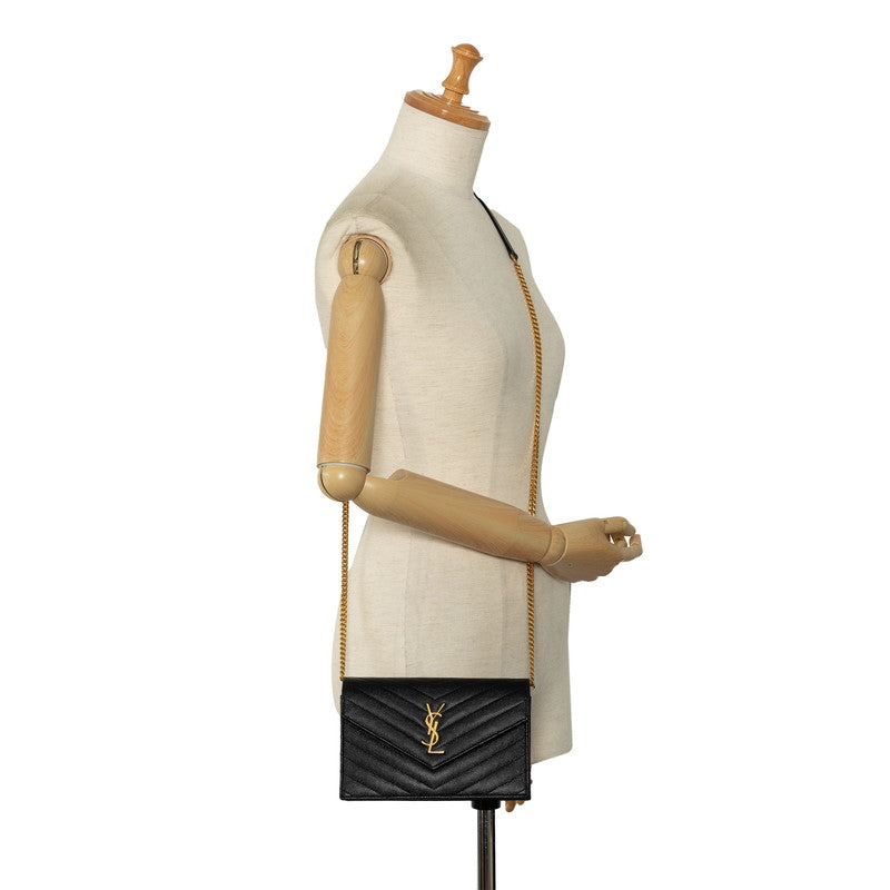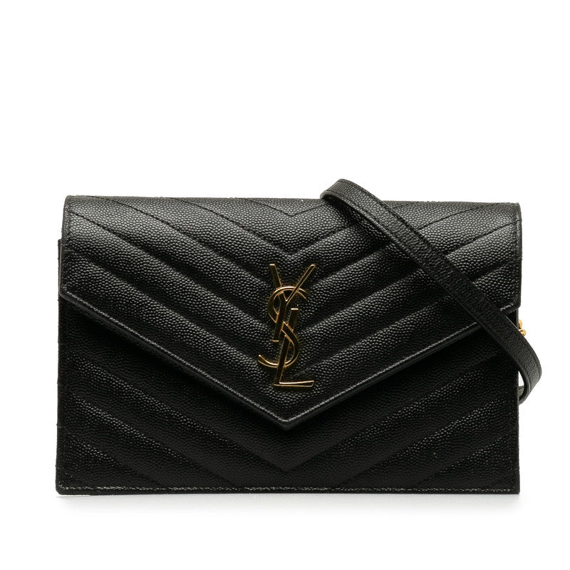 サンローラン エンベローブ チェーンウォレット ショルダーバッグ 393953 ブラック ゴールド レザー レディース SAINT LAURENT 【中古】