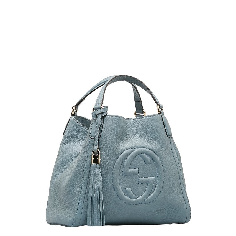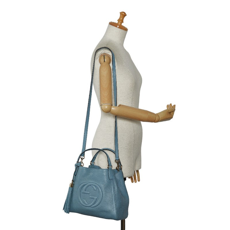 グッチ ソーホー インターロッキングG ハンドバッグ ショルダーバッグ2WAY 336751 ブルー レザー レディース GUCCI 【中古】