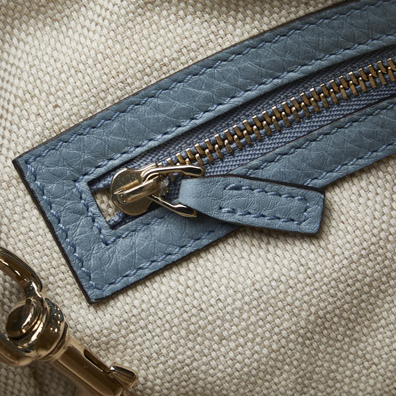 外側⇒全体的に薄い変色 サイド⇒僅かに汚れ 底面⇒薄汚れ 内側⇒底部に若干の糸ほつれ、オープンポケット内に若干のノリ染み 付属品⇒チャームに薄汚れ・若干のサビ |